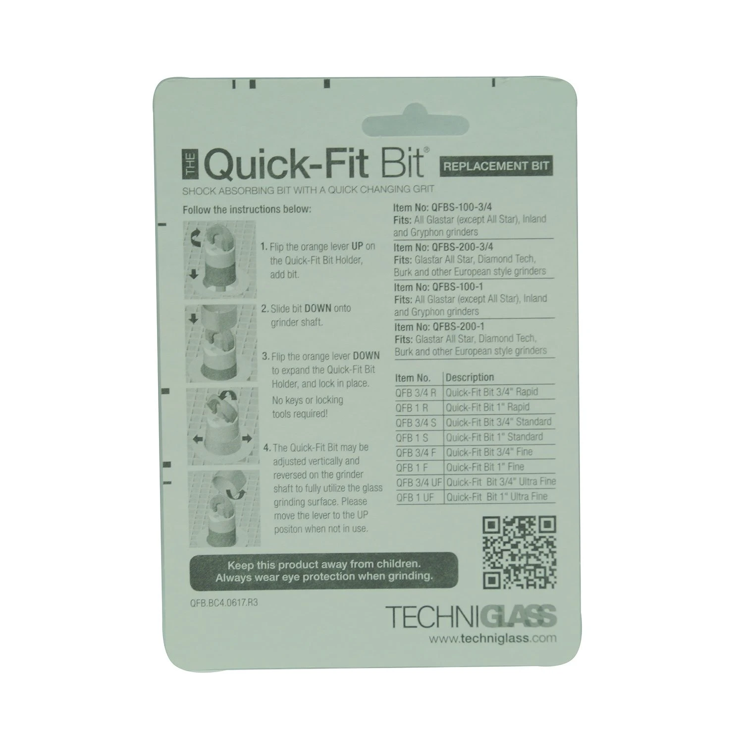 The quick-fit bit system is unlike any other bit in stained glass! It is designed to be quick to change without the use of a hex wrench or other tools like conventional grinder bits. With a flip action of the holder’s lever, you can change your bit, or the grit of the bit, in seconds! There’s no need to find and use keys or locking tools – no grinder freeze-ups!