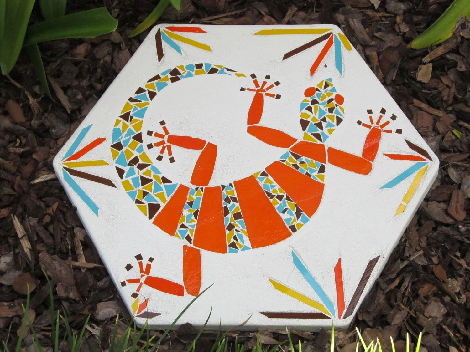 Garden stepping stones by artists Pam Belleville and Denise Christmas-Gibson. Sunburst stepping stones by Carleen Samann. From Delphi’s Online Artist Gallery.