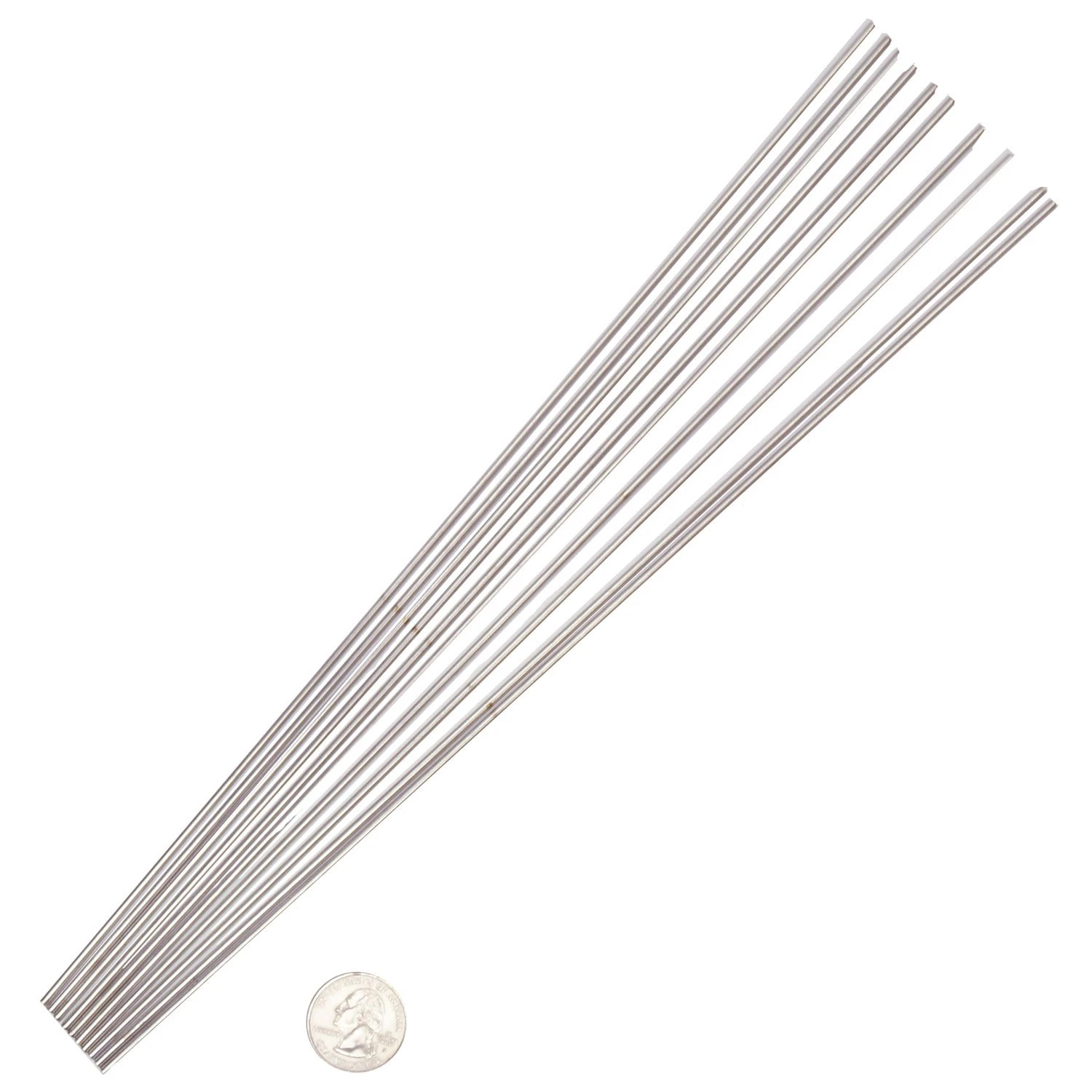 These long round rods are made of high temperature metal and make bead making a snap! Low heat transfer will keep your fingers cool while you wrap molten glass around the other end to create glass beads. 3/32″ diameter mandrels. Stainless steel, 9″ in length, set of 10. Perfect diameter for standard beads and Bead Pen, #69301.