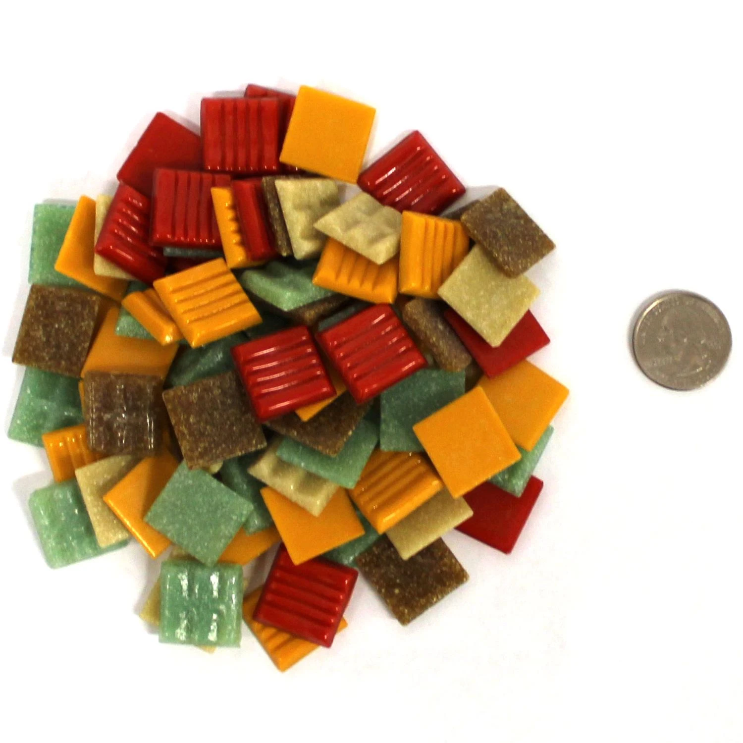 Squares measure 3/4″ and are about 1/8″ thick. Sold in 1/2 lb. bags containing about 75 tiles. Covers approximately 48 square inches. Colors may vary slightly from image.