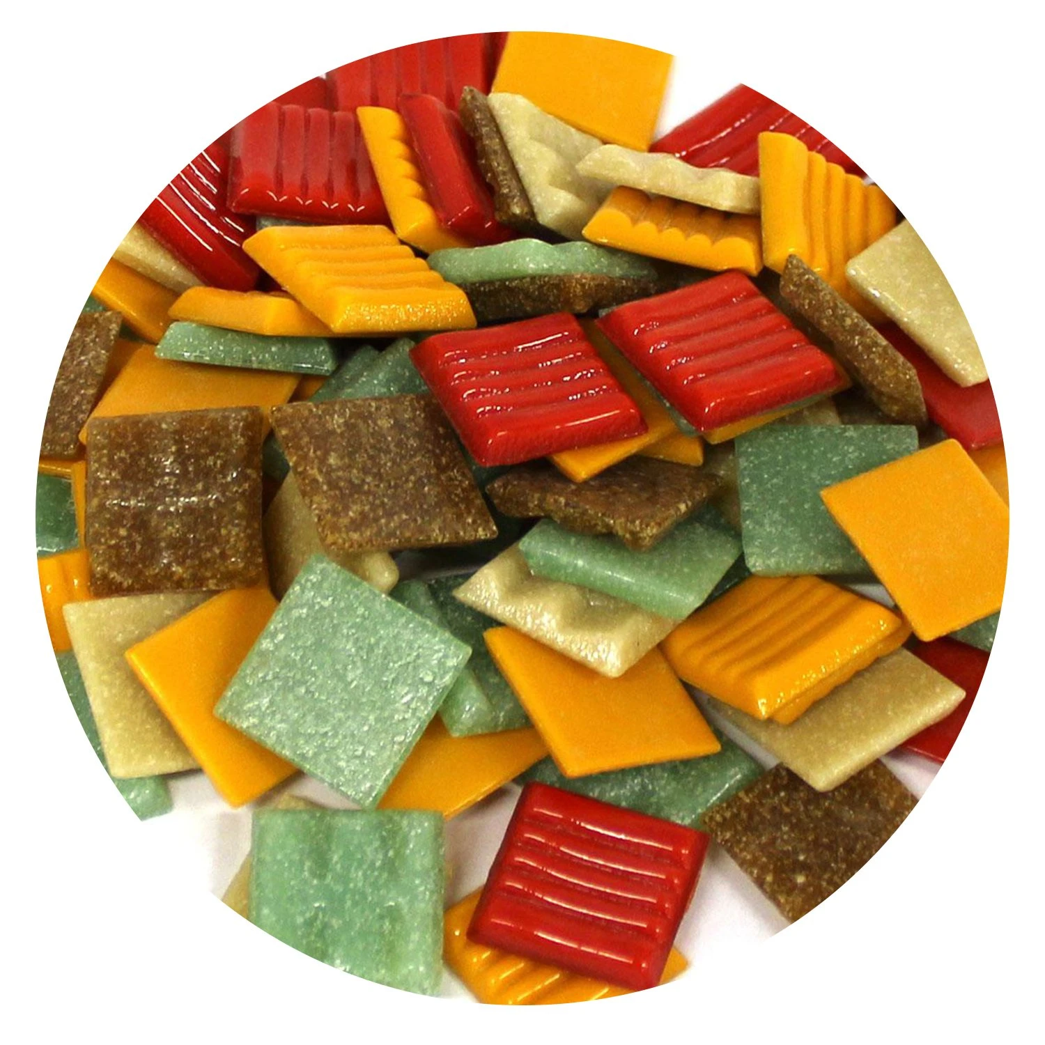 Mix it up with this great glass tile mix! All tiles are durable, strong, and beautiful. Glass tiles have shimmery translucent highlights that will add sparkle to your designs and are perfect for keepsakes projects and gifts. Mosaic whole, or easily nip for smaller shapes.