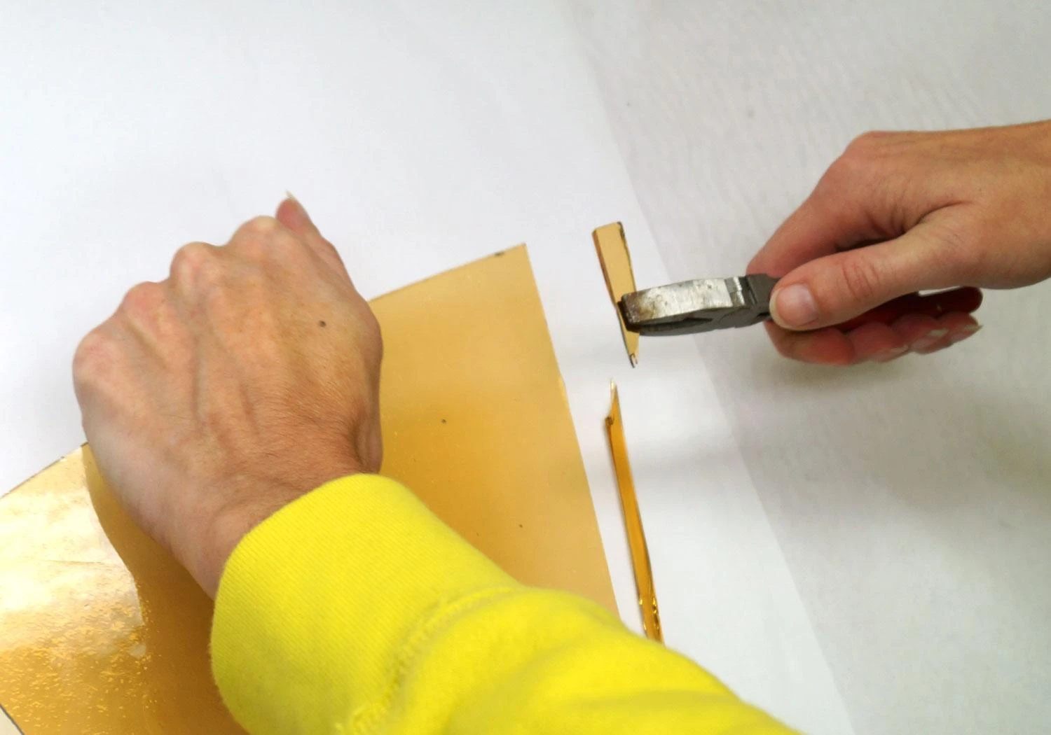 - Break the glass by holding it’s surface in one hand and holding the plier in the other hang.