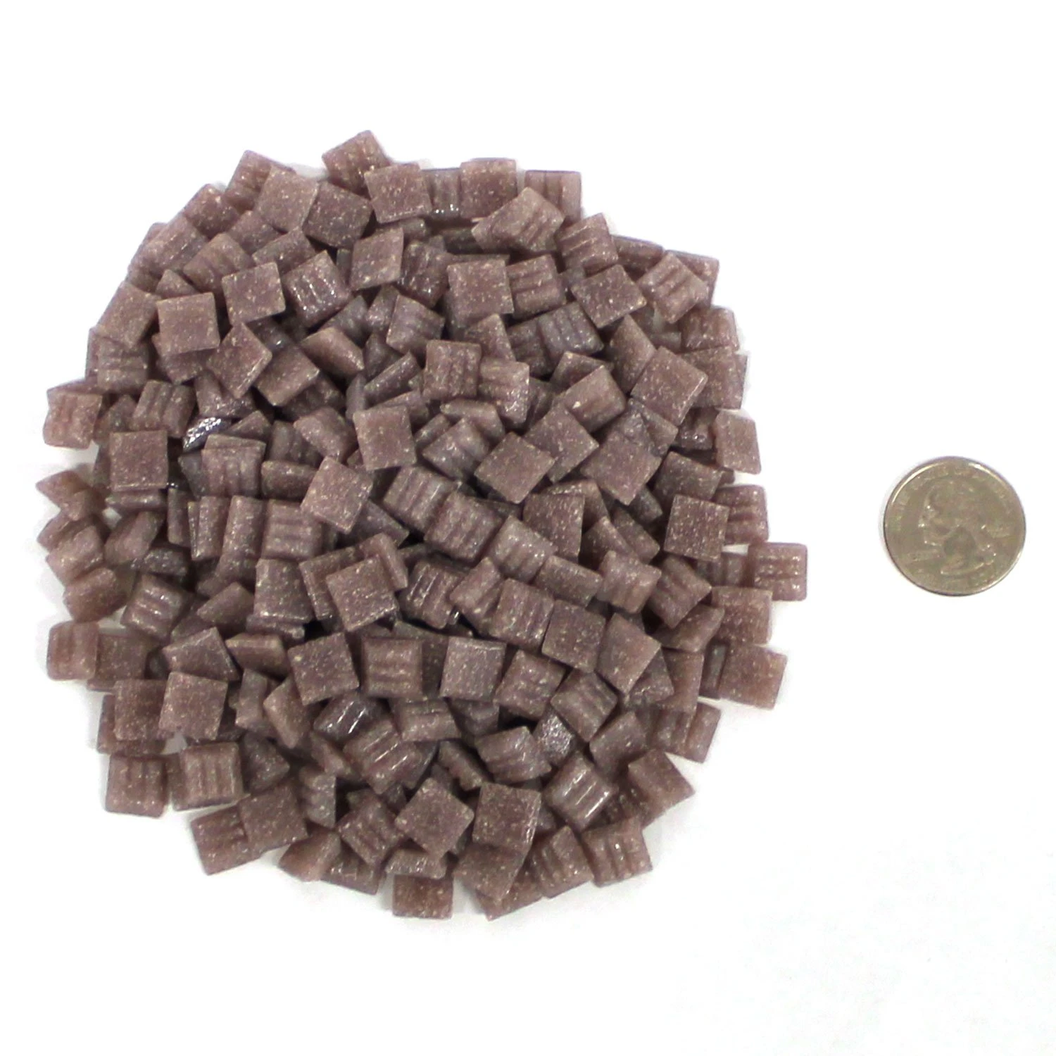 Squares measure 3/8″ and are about 1/8″ thick. Sold in 1/2 pound bags containing about 325 tiles that will cover an area bout 50 square inches. Colors may vary slightly from image.