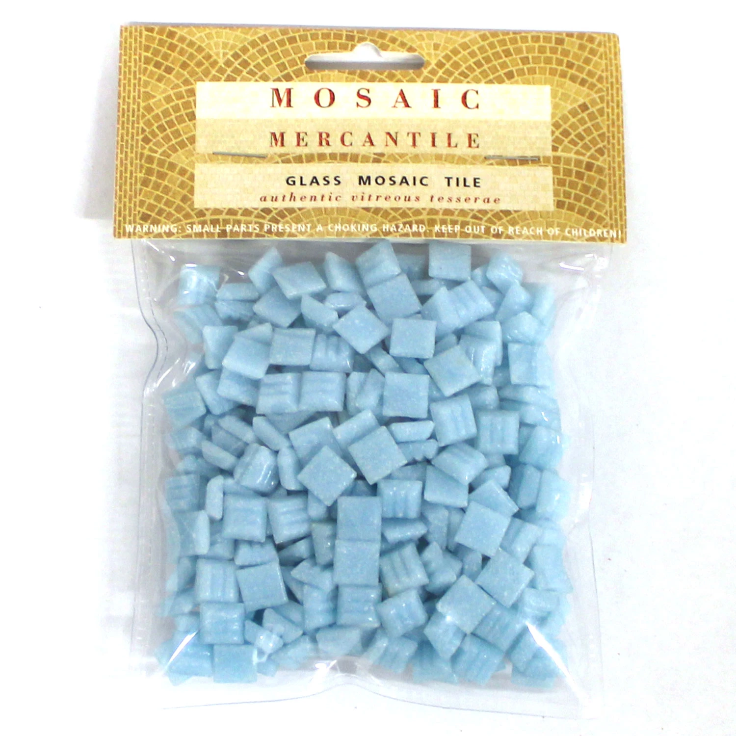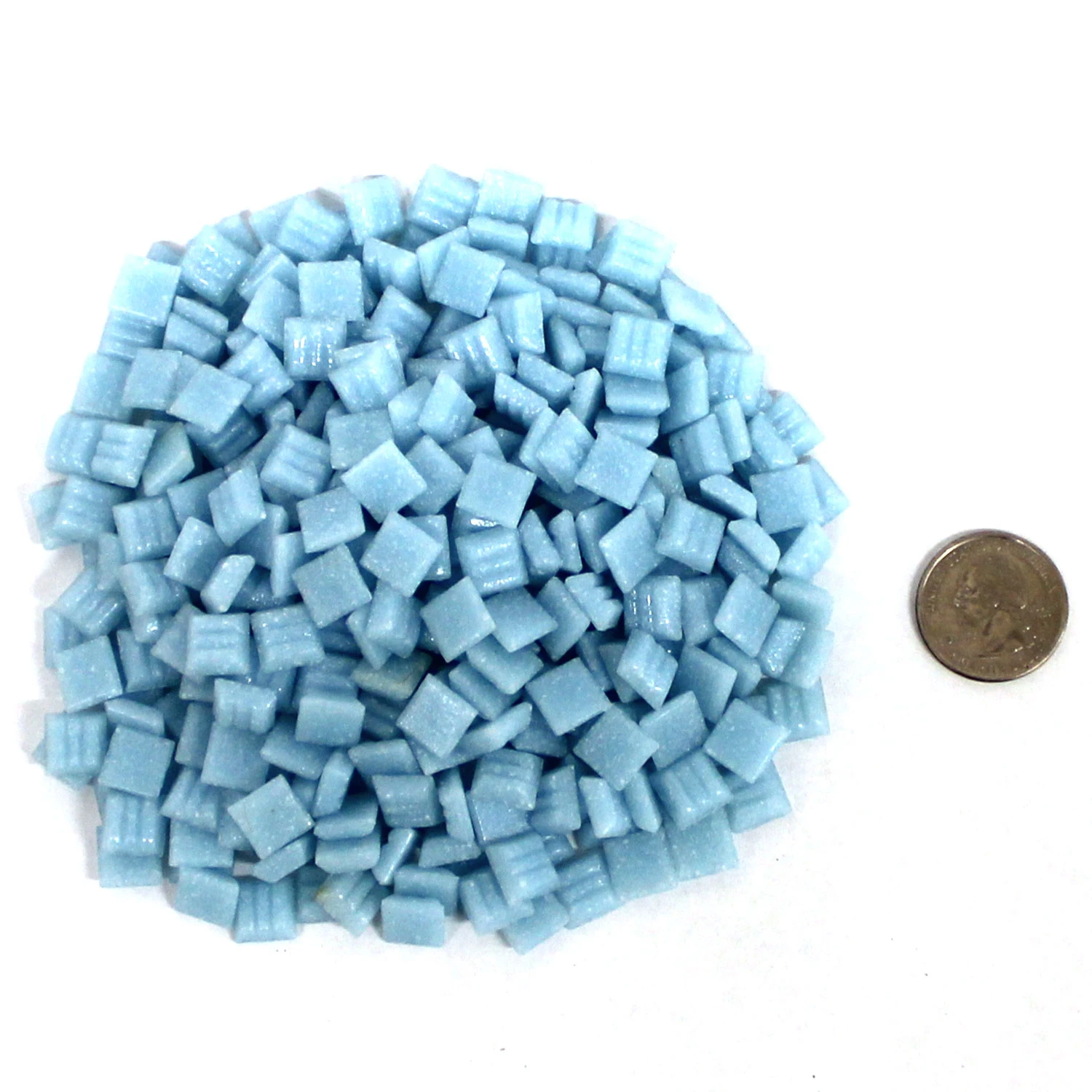 Squares measure 3/8″ and are about 1/8″ thick. Sold in 1/2 pound bags containing about 325 tiles that will cover an area bout 50 square inches. Colors may vary slightly from image.