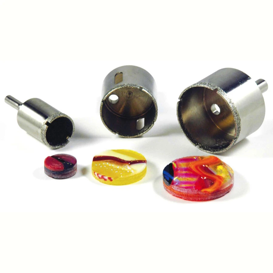 Gryphon’s core drill bits for glass artists feature the same high quality coating as their well-respected grinder bits. Diamond bits quickly and easily remove a complete circle in glass. Core bits work with a standard electric drill and only need water as a lubricant. 50mm core bit is equal to approximately 2″. Features a 12mm shank.