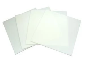Pre-cut white fusible glass squares are easy to store and even easier to work with! Add fun decoration with liquid stringer, fusing photo paper, pre-cut glass chips or a multitude of other fusible options for instant art. Incorporate squares into larger fused projects, or cut and nip them down into pieces the perfect size for jewelry. Squares measure approximately 6″. Sold in packs of four. 96 COE.