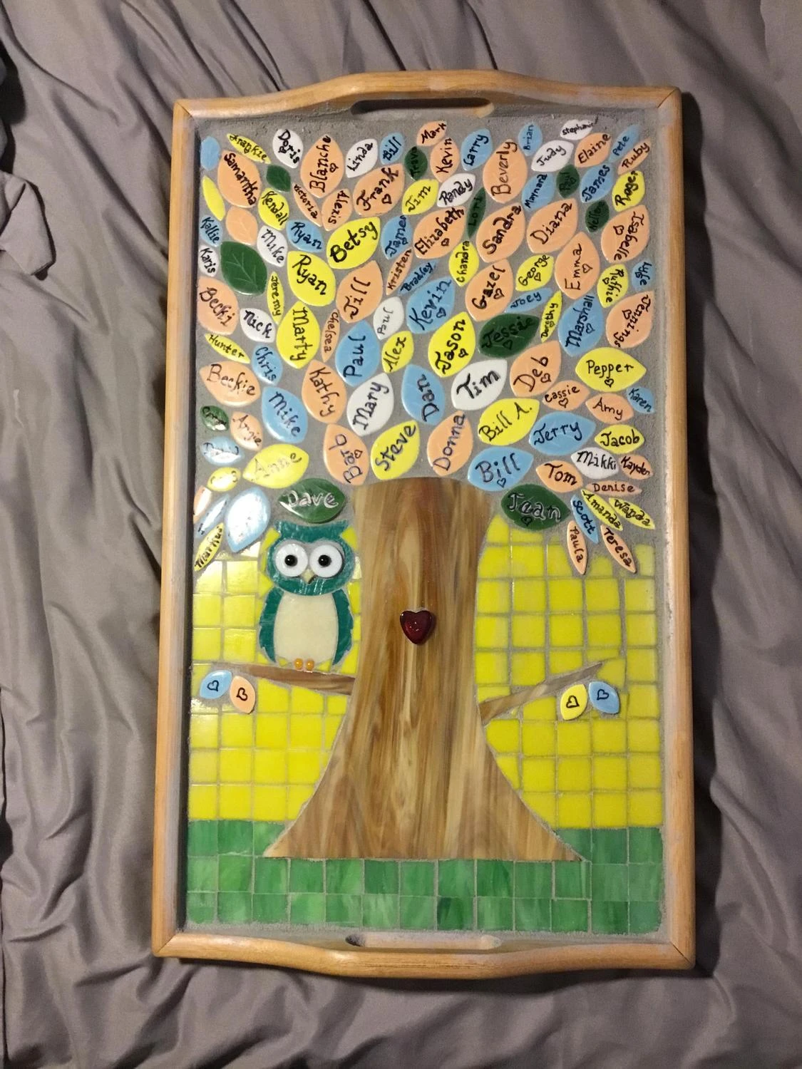 Trivet project below created by Julie Haan using Leaf Tiles #612717 and trivet #612735. Mosaic tree project by artist Donna Wheeler, from Delphi’s Online Artist Gallery.
