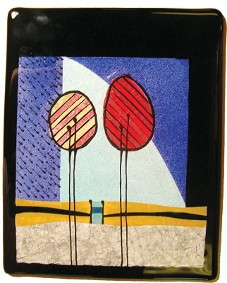 Project below created using Fusible paper and Glassline Pens #802015. Quilt plate by artist Daisy Simon.