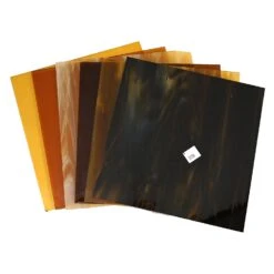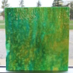 Fracture streamer glass consists of paper-thin shards of colored glass and float in curving black glass threads on a clear background. Excellent for background and accent pieces. Features an icy spring color combination. Single-rolled “Catspaw” transparent fusibles have slightly knobby textured backs and pointillistic light transmission. Standard thickness 3mm. Single Rolled. 90 COE.