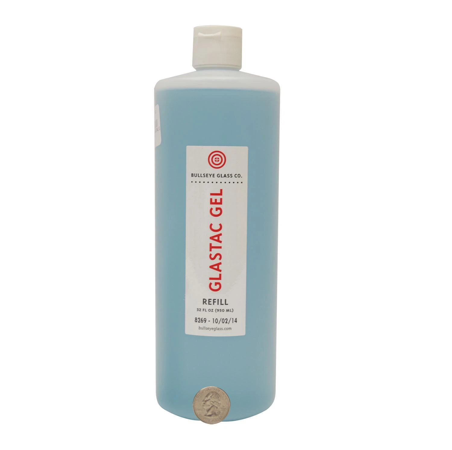 The fusers glue you know and love now in a new gel formula. This thicker version GlasTac stays sticky longer to provide more working time. GlasTac Gel holds it’s applied shape well – it can even be applied with a paint brush. Its organic colorant lets you see where you’ve put the glue on clear glass, but it burns out in the kiln. 32 oz. refill bottle. Also available in a 4 oz. applicator bottle (item #B8268).