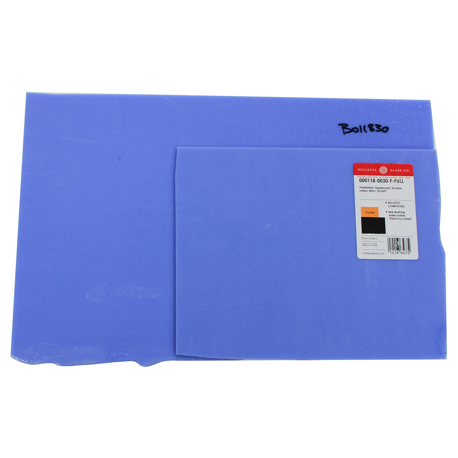 Premium handmade Bullseye glass is ideal for high-quality kiln work. Specifically formulated and tested for compatibility, this glass withstands multiple firings for complex projects without devitrification. The flatter double-rolled surface minimizes bubble entrapment, so colors can be layered for custom hues. A subtle “catspaw” texture allows modest light transmission when used in stained glass projects, creating an organic look.