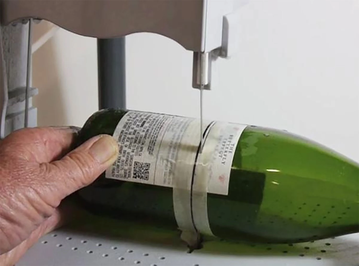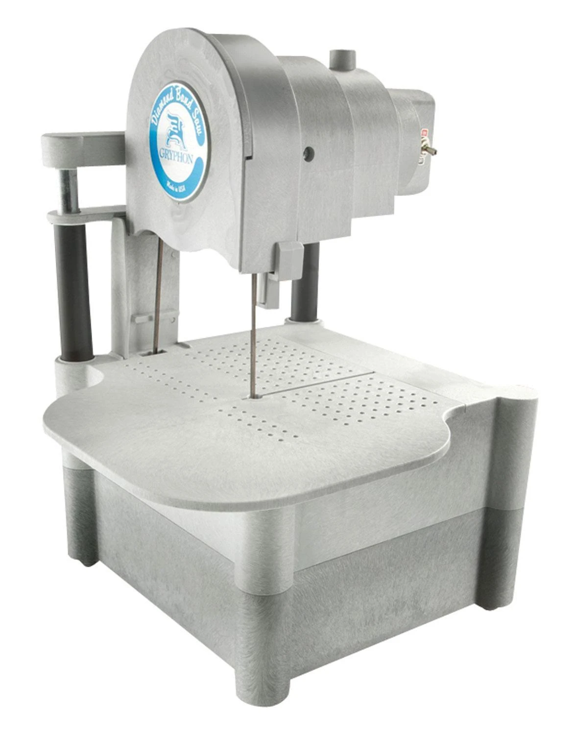 The diamond blade on the band saw is useful for cutting a variety of hard materials. Stone, tile, ceramics and similar materials can be cut as easily as glass. The speed at which the saw cuts will be determined by the thickness and the hardness of the material being cut. Harder materials will wear the blade faster.