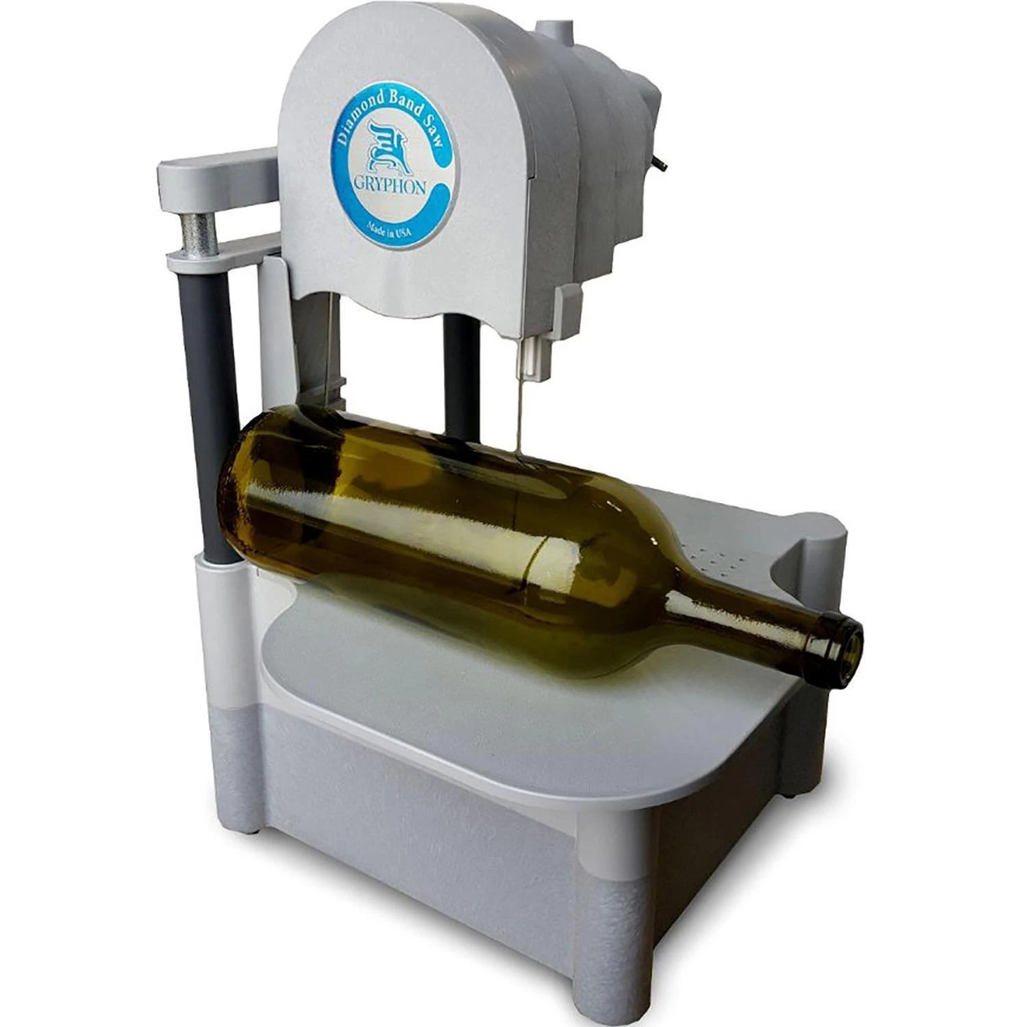 It’s a bottle art enthusiast’s dream come true! The added blade length and taller stature allow 4-1/2″ of blade clearance with the upper blade guides in place. If extra depth is needed, the top blade guide can be removed to provide an incredible 5-1/2″ of clearance. This unique feature makes the C-40 Tall Band Saw ideal for cutting glass bottles of any shape.