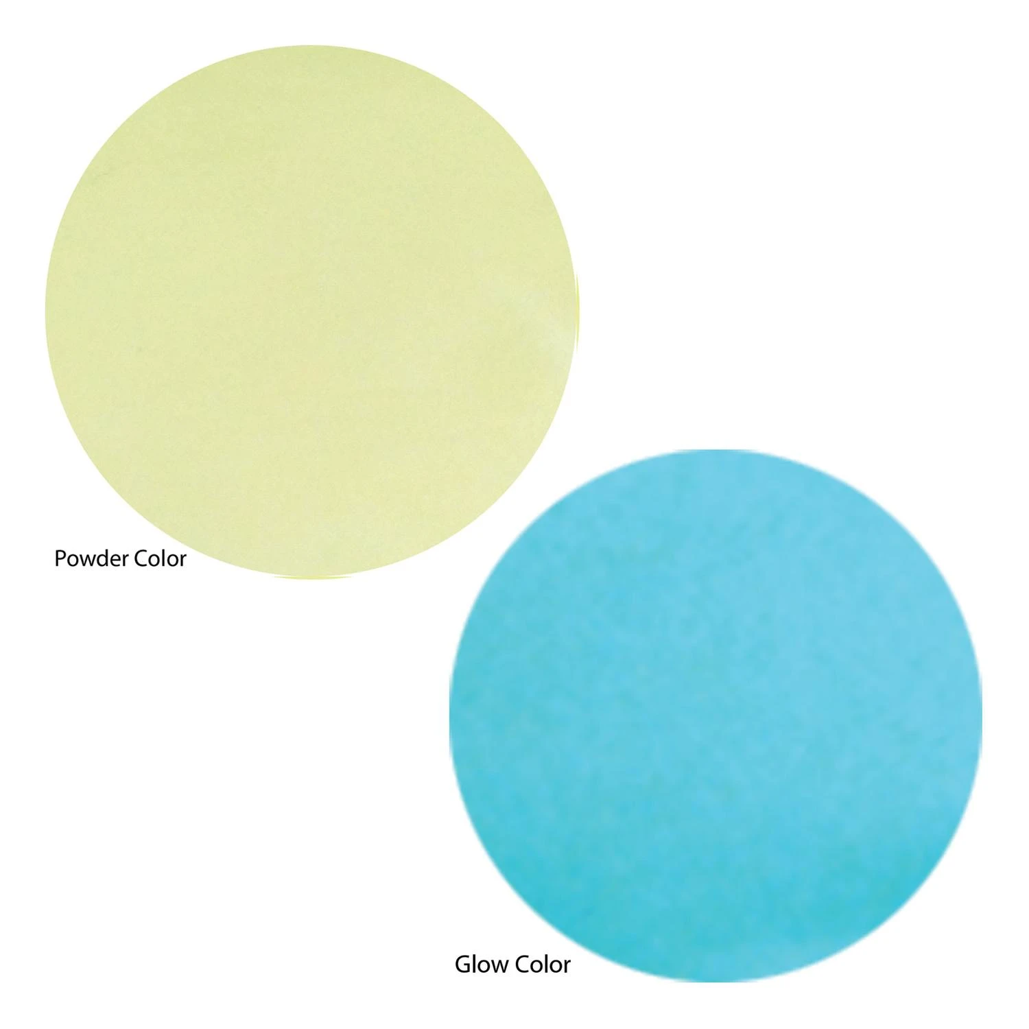 A single minute of light exposure will provide subtle luminescence for a short time. For longer glow times and brighter illumination expose to sunlight. Exact glow times may vary depending on multiple factors, including light exposure time, quality of light used for exposure (full-spectrum daylight is best), and ratio of pigment used in your project. Glow powder is safe to use: non-toxic, non-carcinogenic, non-flammable, non-radioactive and non-hazardous. 1 ounce. Aqua glow pigment appears pale yellow but creates vibrant aqua glow.