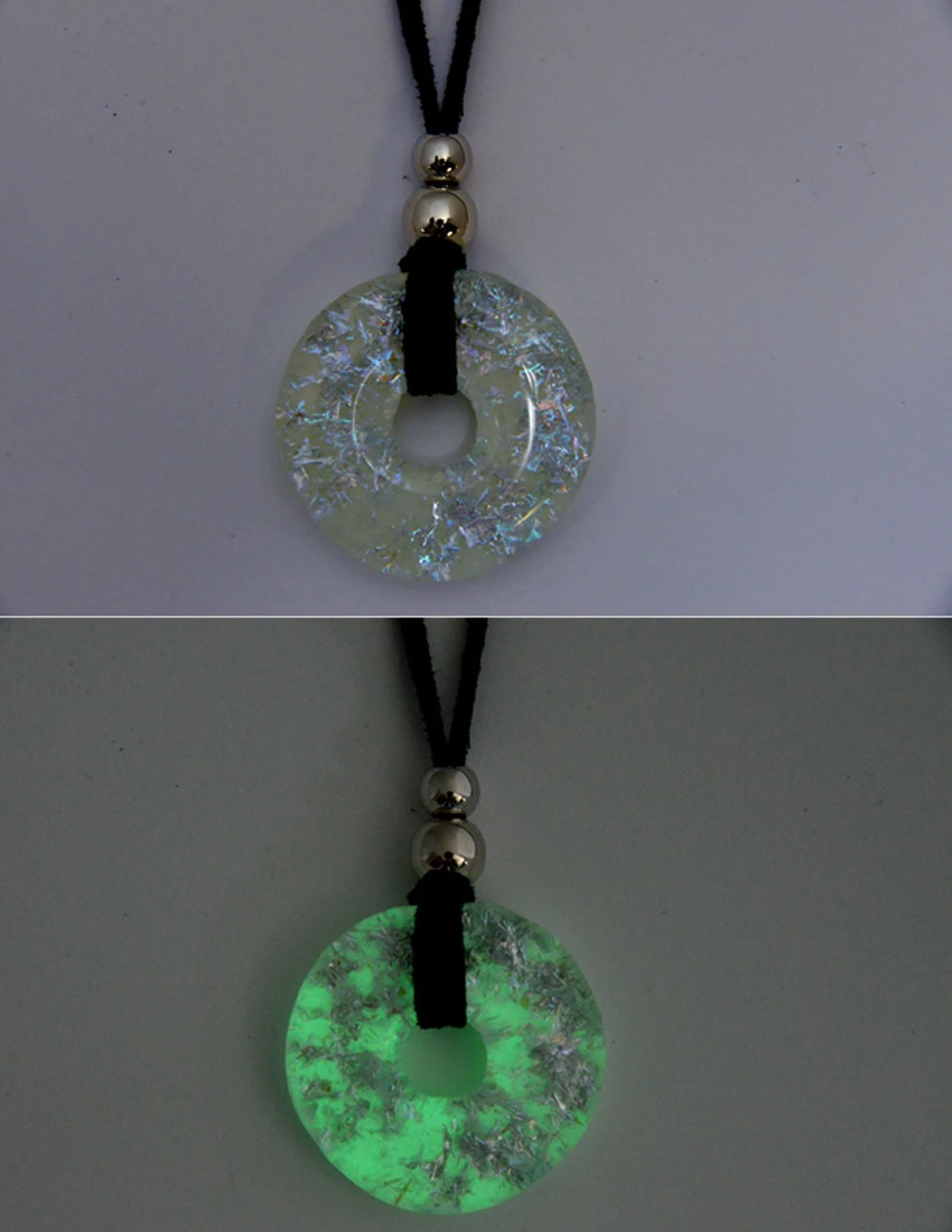 Compatible with all COEs, this accent is perfect for adding detail to dichroic glass, unique beads, castings, lampworking and more. When mixing your glow pigment with glass powder use a ratio of 1 part glow pigment to 4 parts glass powder, roughly 20% glow pigment and 80% glass powder. Glow powder should all be capped to give a smooth texture to your art and prevent pigment from wearing away.