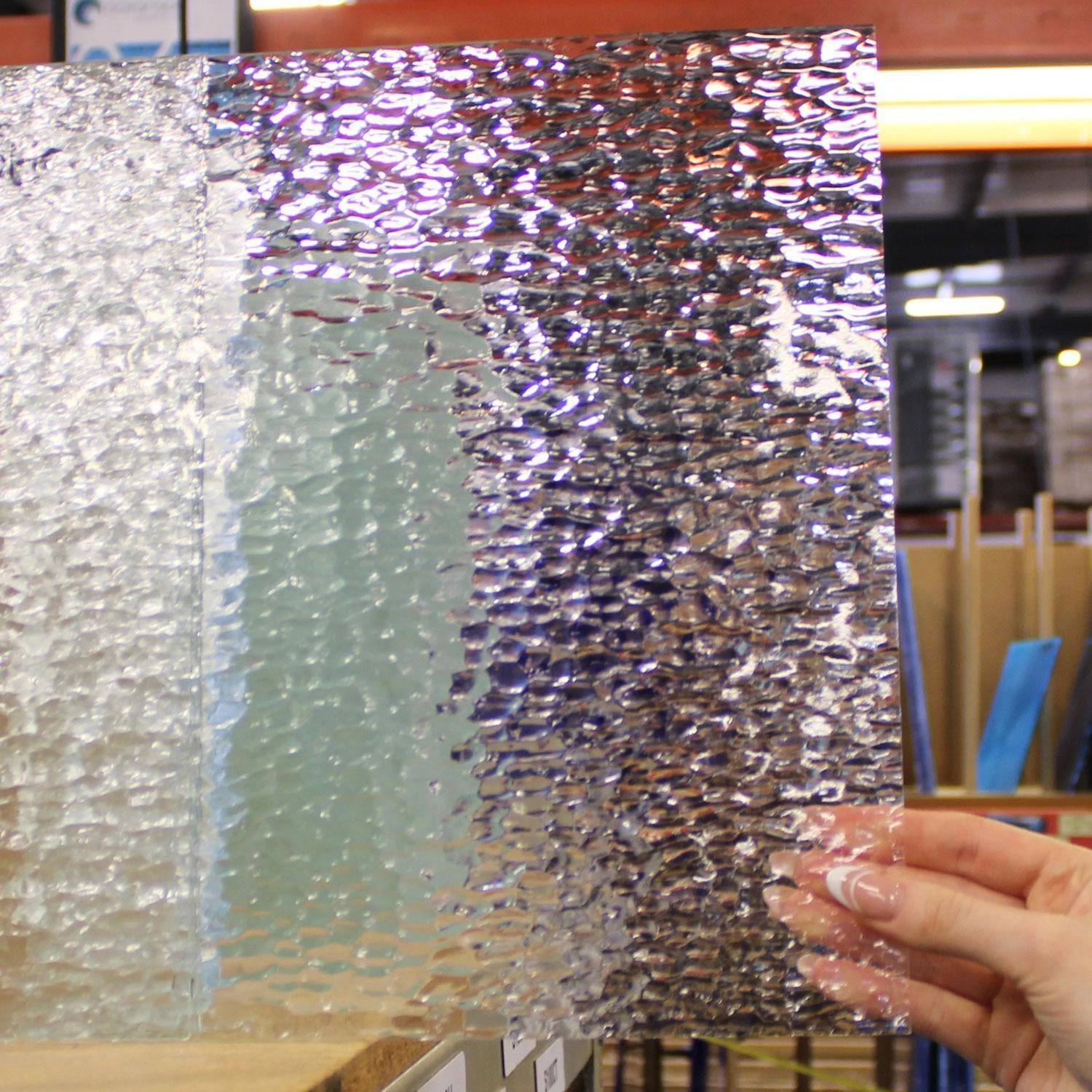 Clear textured glass, sometimes called architectural glass, can add incredible depth and beauty to your home. Textures, ranging from subtle to dramatic, add privacy, movement, and create ambiance in designs like nothing else. Most commonly used in cabinets and entryways, clear textures can be used to add dazzling appeal to panels, sun catchers and more! Use alone or in combination with other textures and colors to create a stunning piece of glass art.