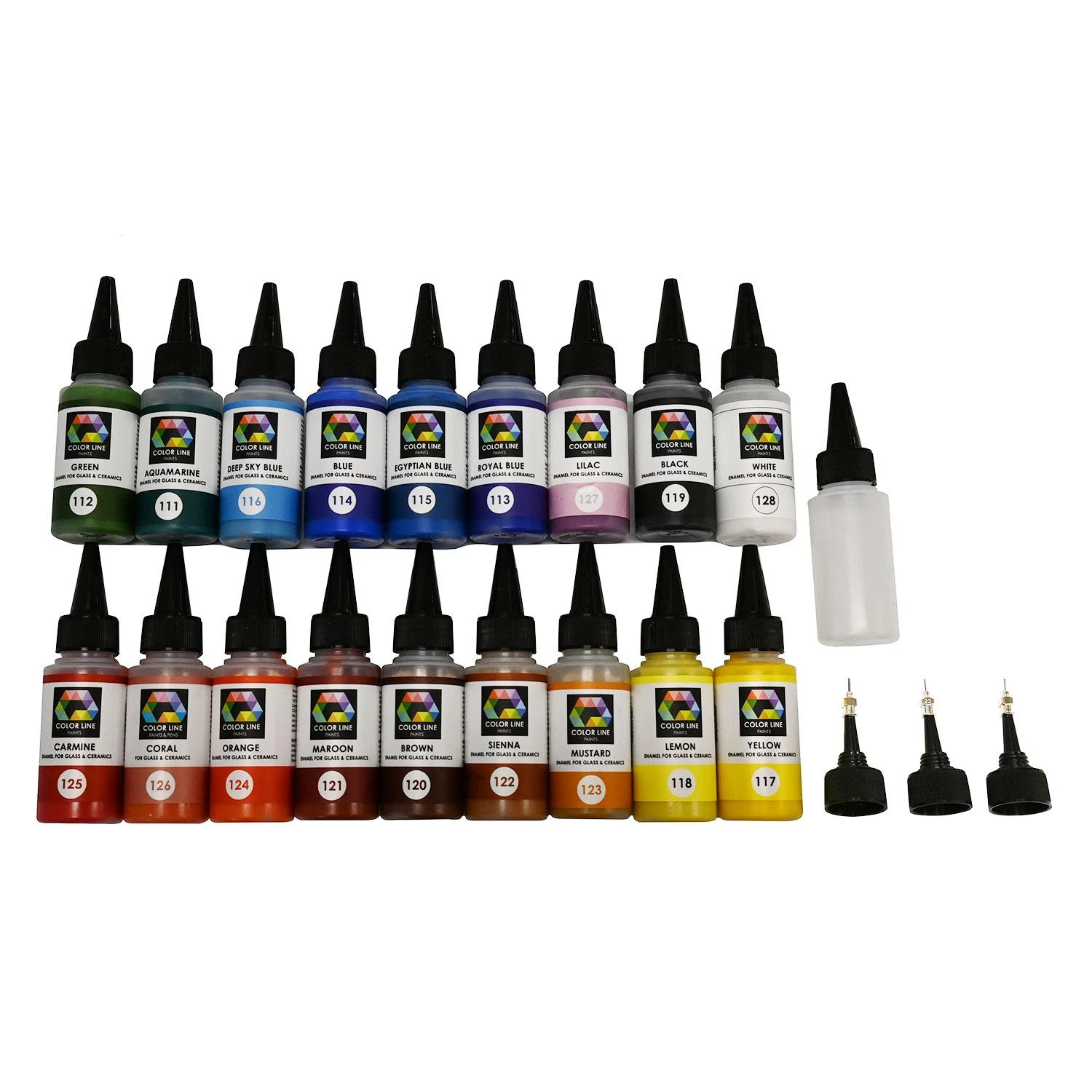 - Includes 18 2.2 Oz. Color Line paints, 1 tip set and 1 spare bottle