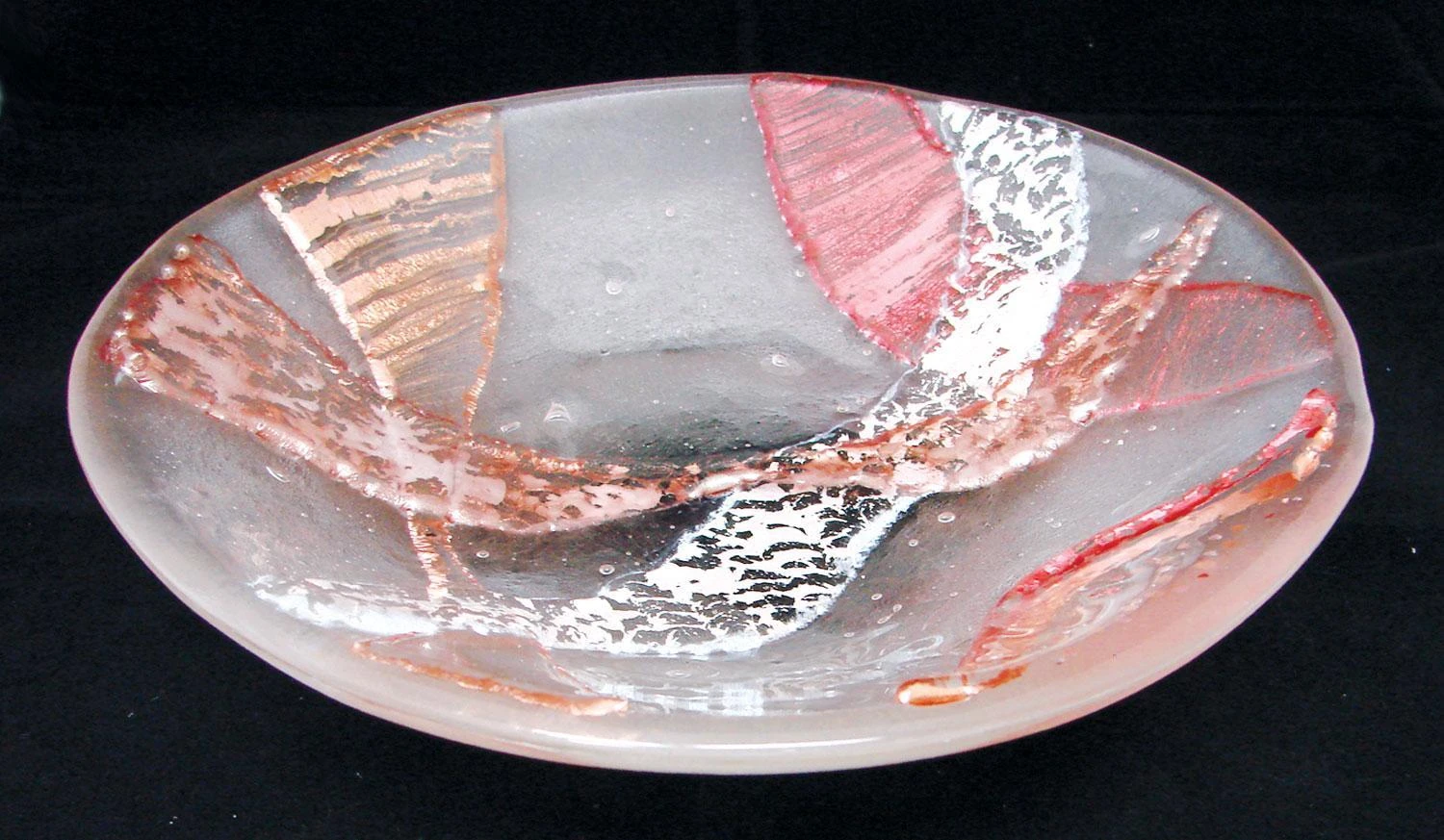 Fused project below by Leslie Perlis. From “Contemporary Glass Enameling” book #6629. Fused glass platter by Delphi artists Melanie Churchill and Karina Foster.