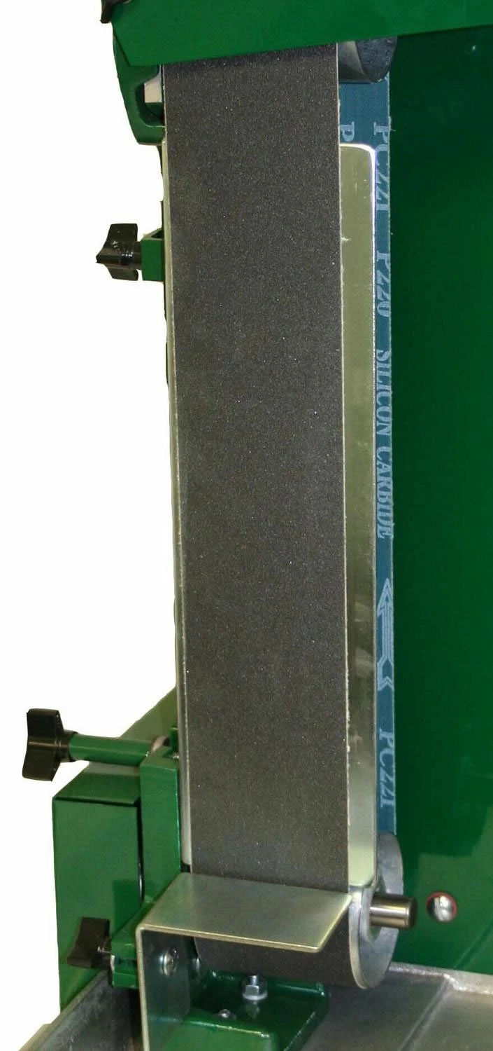 This high quality belt sander is designed with production in mind. Powerful 1/3 hp motor makes fast work of grinding, beveling and polishing. Unobstructed access to work area accommodates larger project, and makes replacing belts easy. Features an adjustable back-up plate. Single control aligner keeps belt running true. Includes one 220 grit 3″ wide belt and 4″ high back plate.