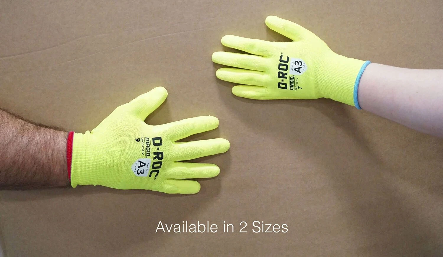 These cut-resistant gloves designed to enhance worker protection and ensure worker compliance through visibility, while also delivering dependable, 360° cut protection. The formfitting DuraBlend shell provides breathability, comfort and protection. A polyurethane palm coating maintains dexterity while delivering an excellent grip. For your convenience, these gloves feature color-coded overcasts to act as a visual aid for sizing after washed. Pair. Size 9. Size 9 gloves fit most men.