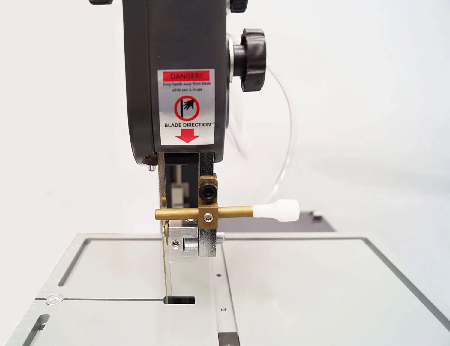 - Adjustable blade guides can be positioned directly over your work up to 1″ thick, reducing vibration in the blade for greater stability and concise control