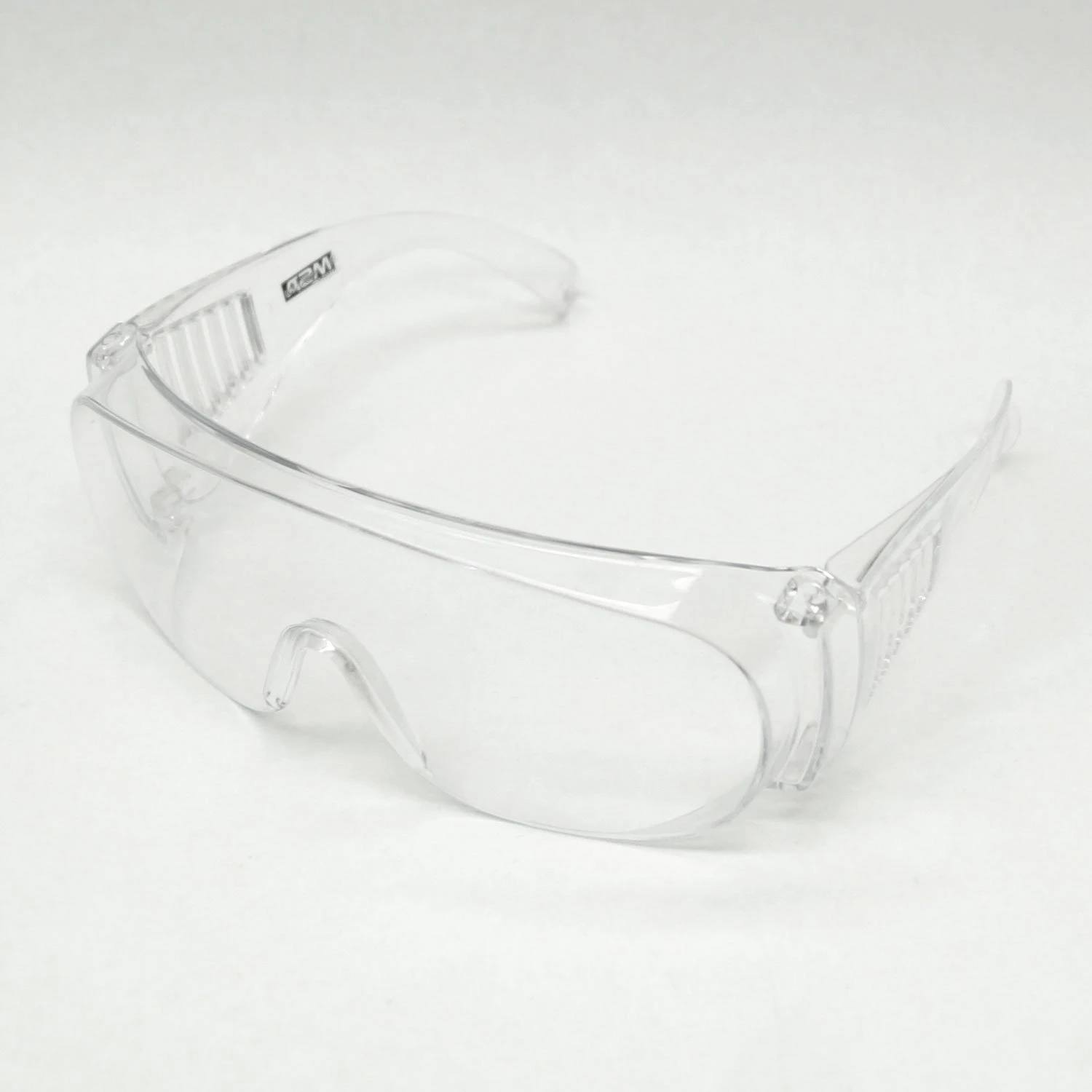 Clear safety glasses are large enough to fit over prescription glasses and features side shields, for wraparound protection.