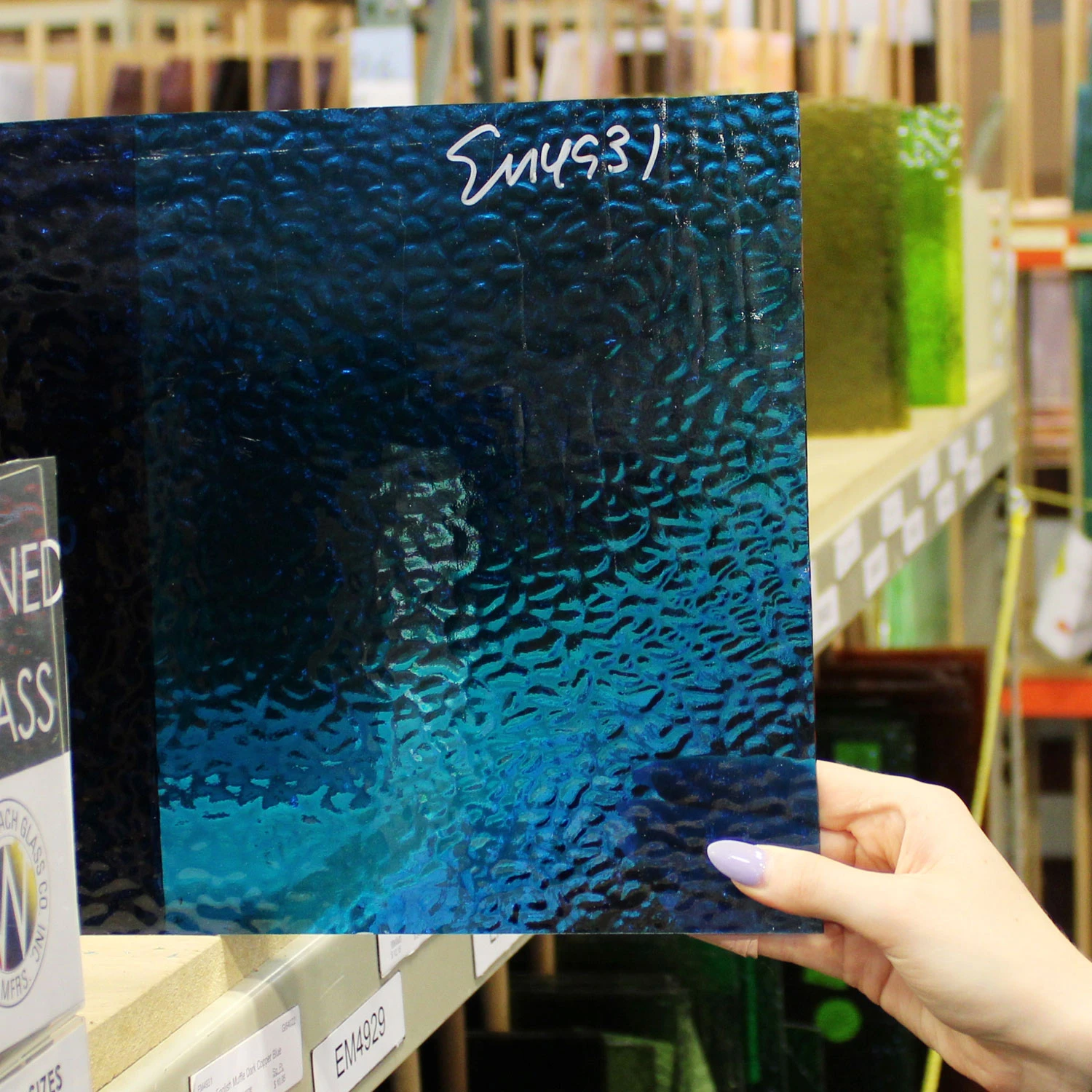 Often used in Victorian designs, English Muffle texture glass is suitable for a variety of styles. This easy-cutting, machine rolled glass features traditional colors, highly refractive texture and crystalline quality. The multi-directional texture allows minimum waste. Glass pieces may include factory rolled edges.
