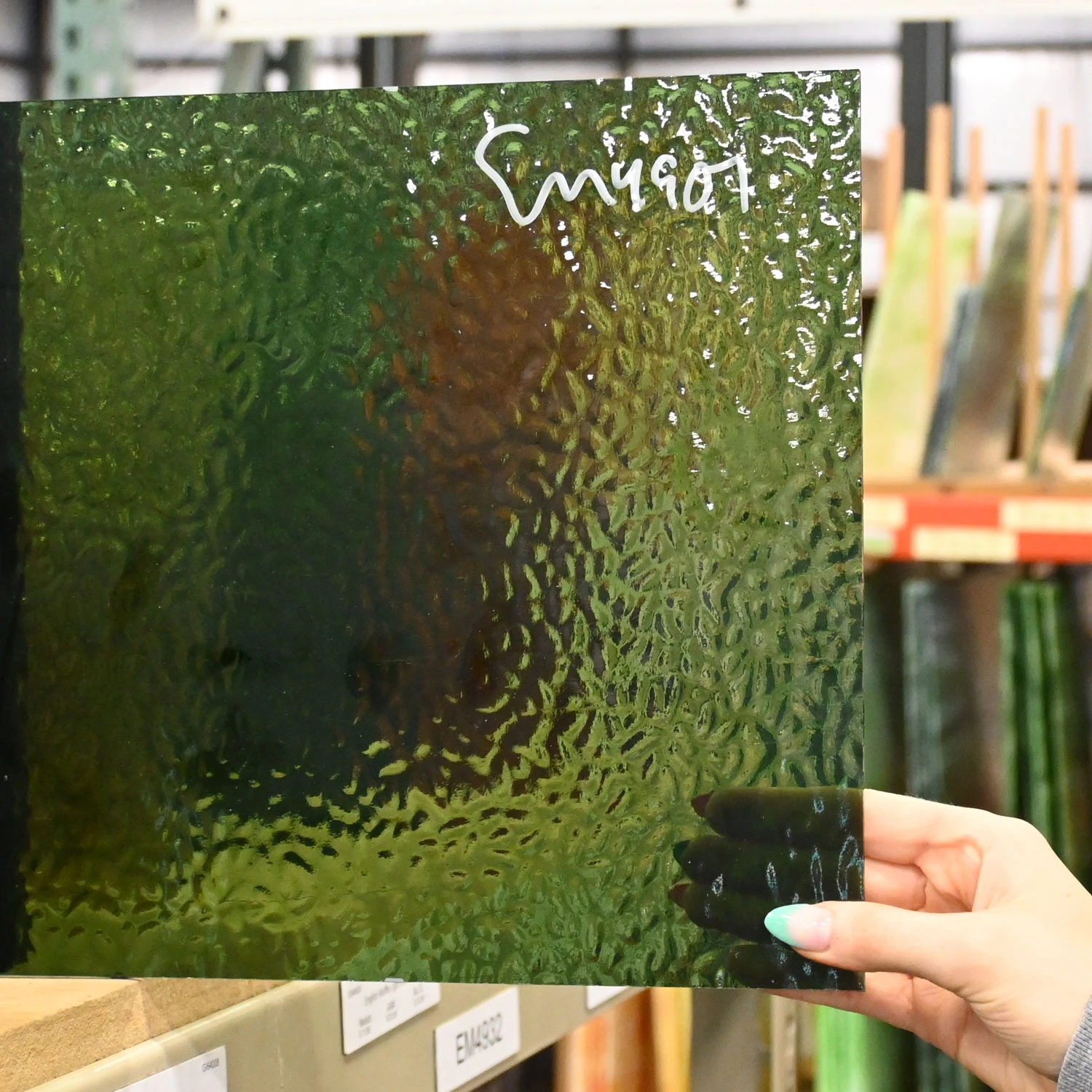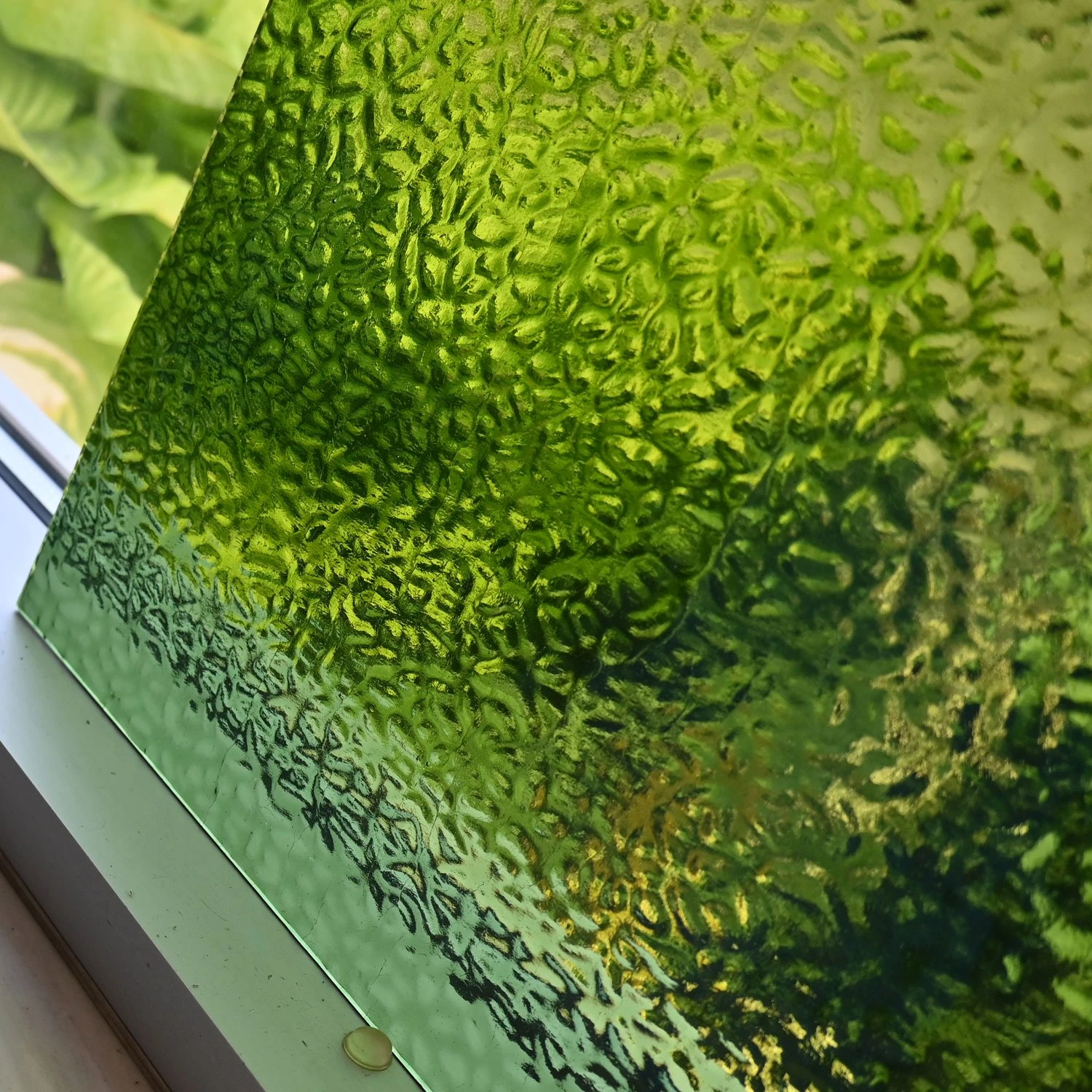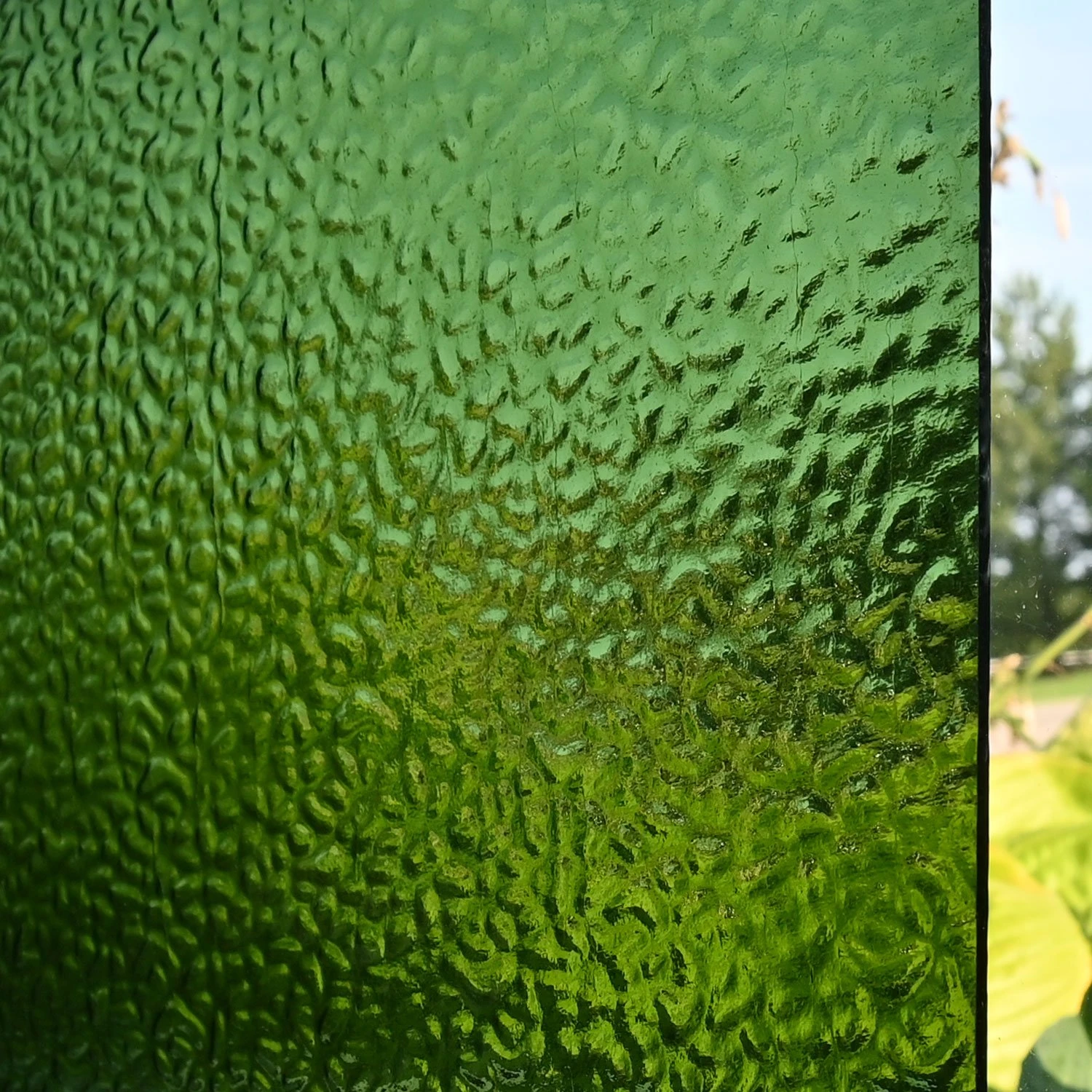 Often used in Victorian designs, English Muffle texture glass is suitable for a variety of styles. This easy-cutting, machine rolled glass features traditional colors, highly refractive texture and crystalline quality. The multidirectional texture allows minimum waste. Wissmach glass often has rounded corners as shown in additional images. Glass pieces may include factory rolled edges.