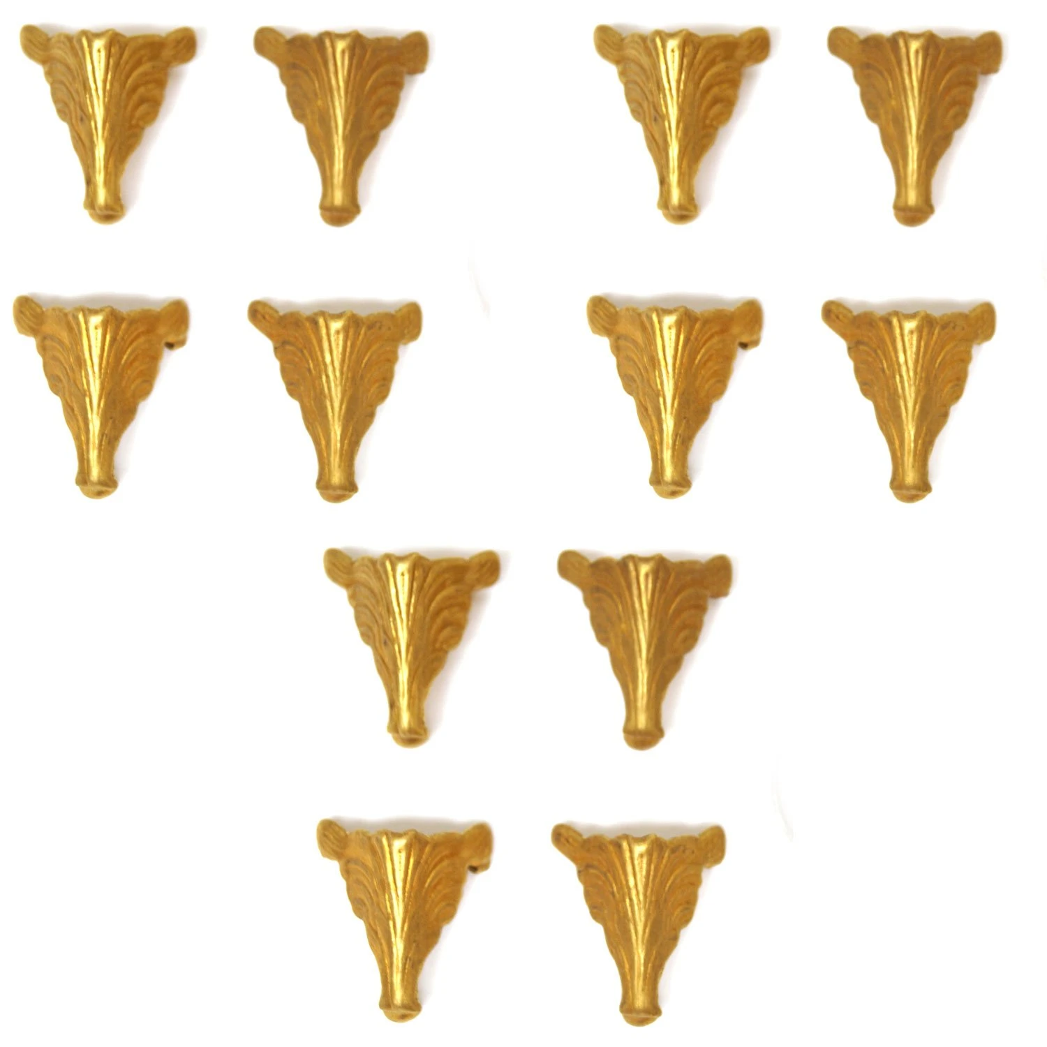 Pre-formed brass feet add the perfect finishing touch to your stained glass box. Fancy box feet feature a delicately embossed texture. Feet are angled at 90º, simply solder in each corner and finish as desired. Feet measure approximately 1-1/4″ x 1″. Sold in packs of 12, enough for 3 boxes!