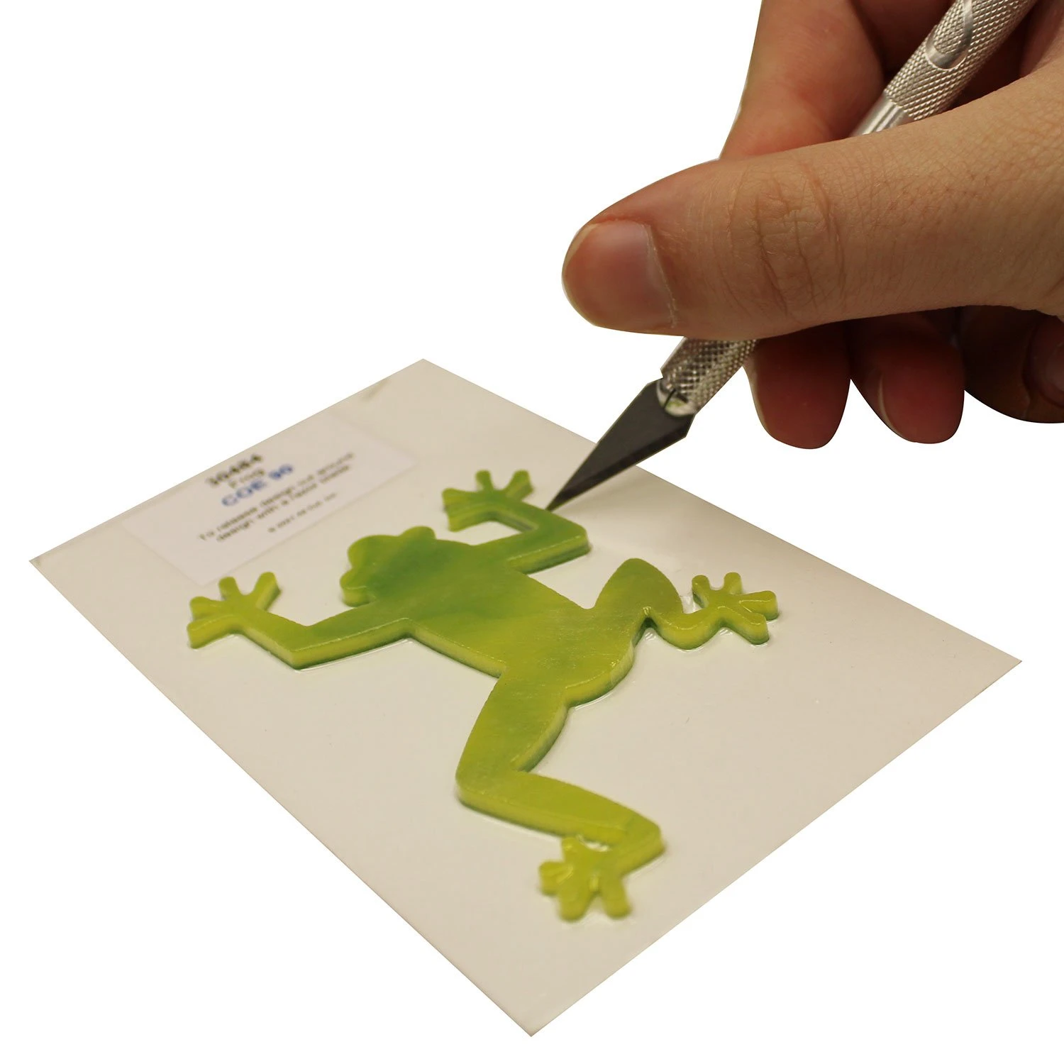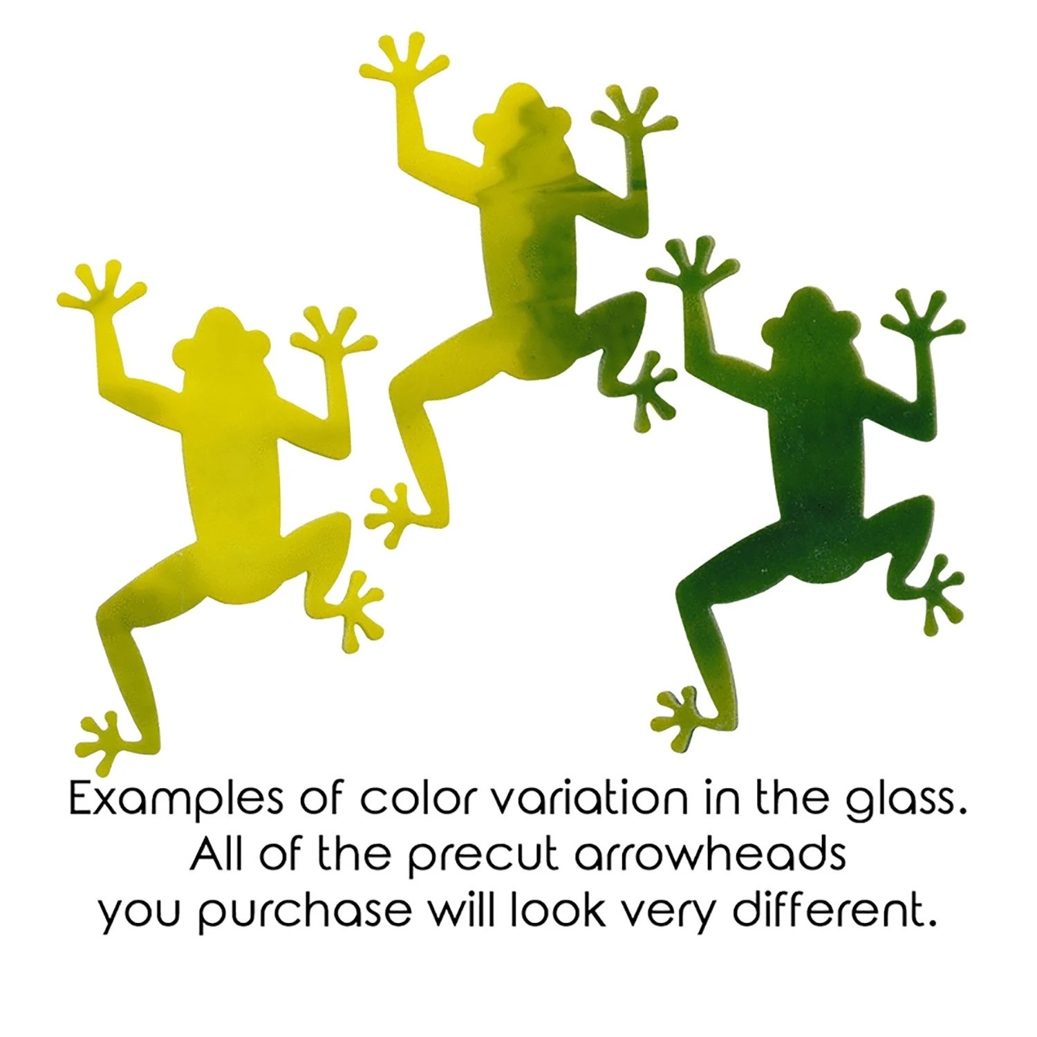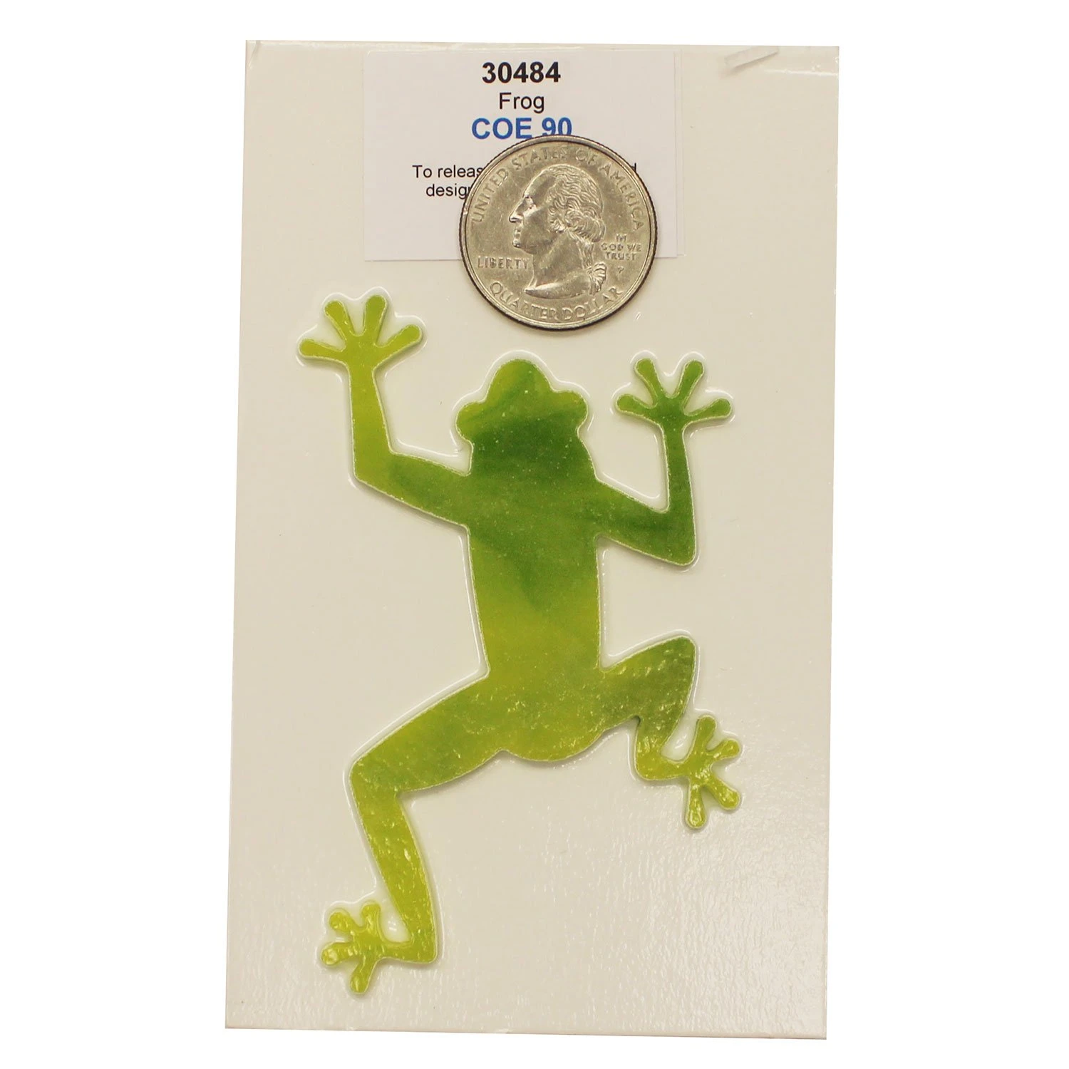Pre-cut frogs make fabulous fused and mosaic art. Cut on a water saw for tight lines and precision detail. Sold individually. Measures 3-1/4″ x 2-1/4″. 90 COE.