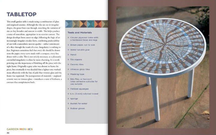 Create a colorful garden with tiles galore! A beginner-friendly guide, Garden Mosaics opens with insightful chapters on understanding the materials, tools, and techniques necessary to prepare and get started. Using ceramic, vitreous glass, marble, mirrors, or granite tiles, you’ll move on to create 19 stunning mosaic garden projects that range from simple to elaborate, from one-of-a-kind pots, garden ornaments, and bird baths to stepping stones, garden tables, wall panels, and more! Each design contains step-by-step instructions and coordinating photography, as well as pattern templates. 2nd edition. 128 pages.