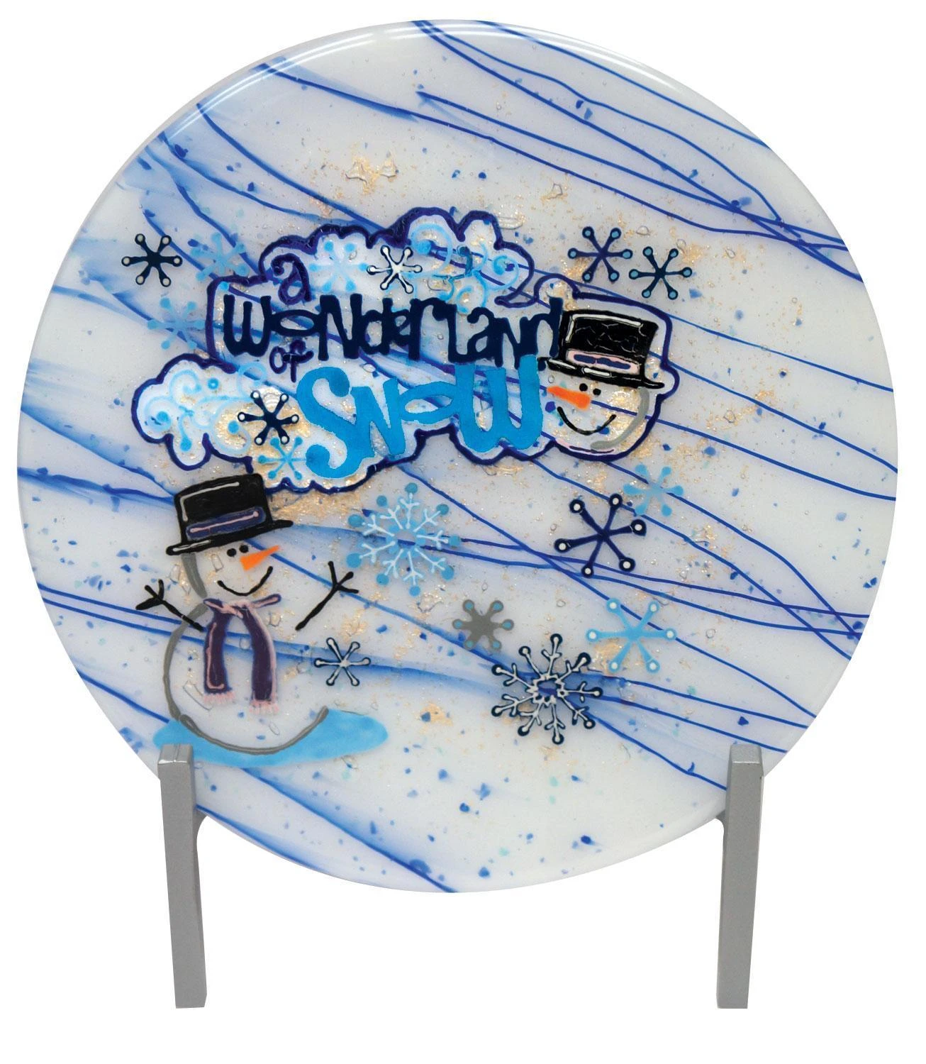 Butterfly project shown in additional images created by Artist Jaime Dobson with Glassline Pens, using multiple layers of glass. Vase project created by Kim Lyle. Glassline chalks and pens on fusible paper, fused in glass. Holiday plate created by Artist Steena Gaut. Winter project created by artist Lexan Cranfill.