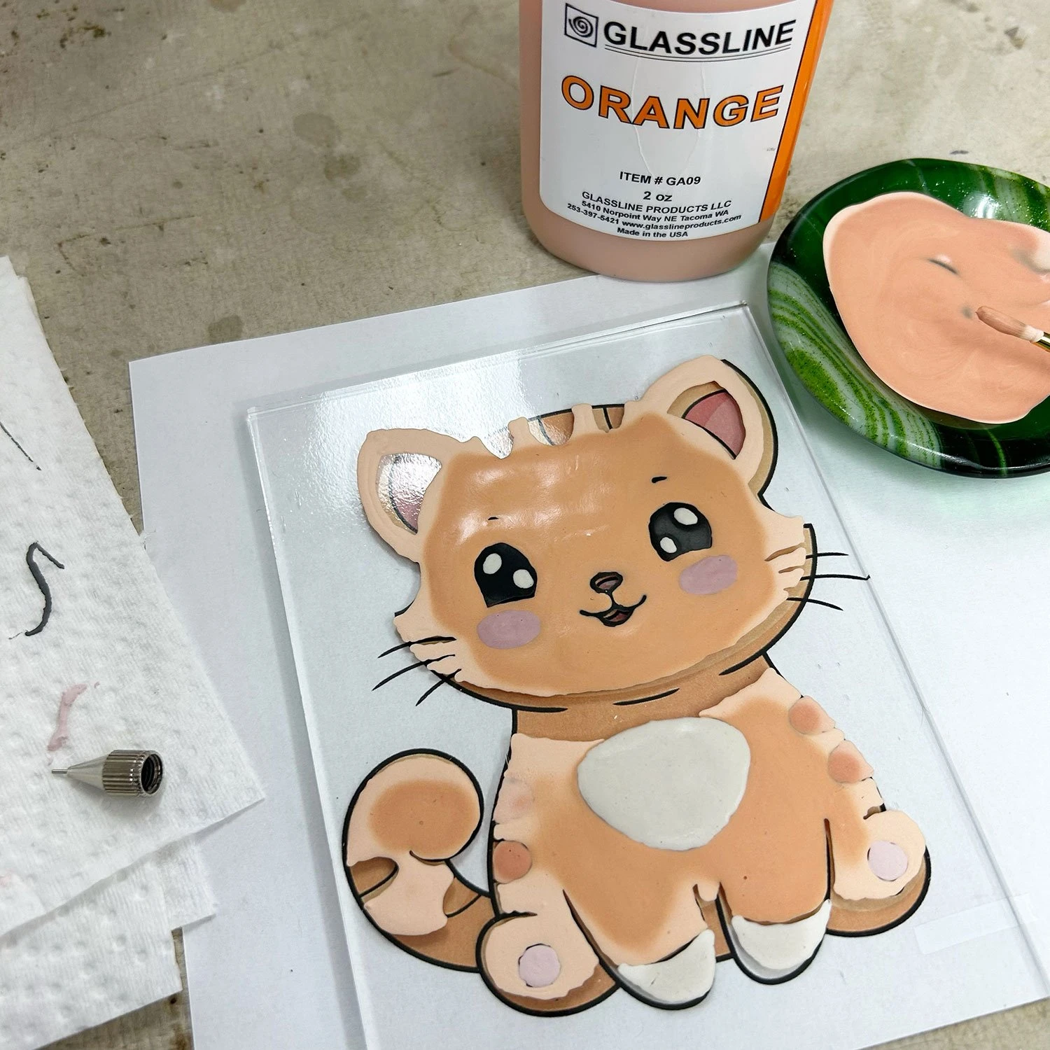 Glassline pens are a lining and shading material for glass. They are easy to use and can be applied between multiple layers of glass or on the top surface for a complex dimensional look. Glassline pens can also be sprayed to achieve subtle shading variations. Glassline is compatible with both COE 90 and System 96 glass. Glassline pens are lead free and food safe. Kit contains 14 colors, each 2 oz., plus a tip set (3 tip sizes: bold, medium & fine).