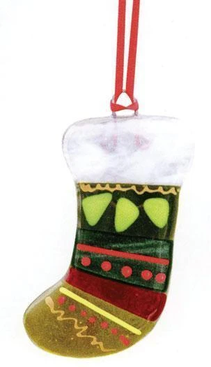Stocking ornament by artist Gillian Hulse. From “Kiln Formed Glass” book #9221.