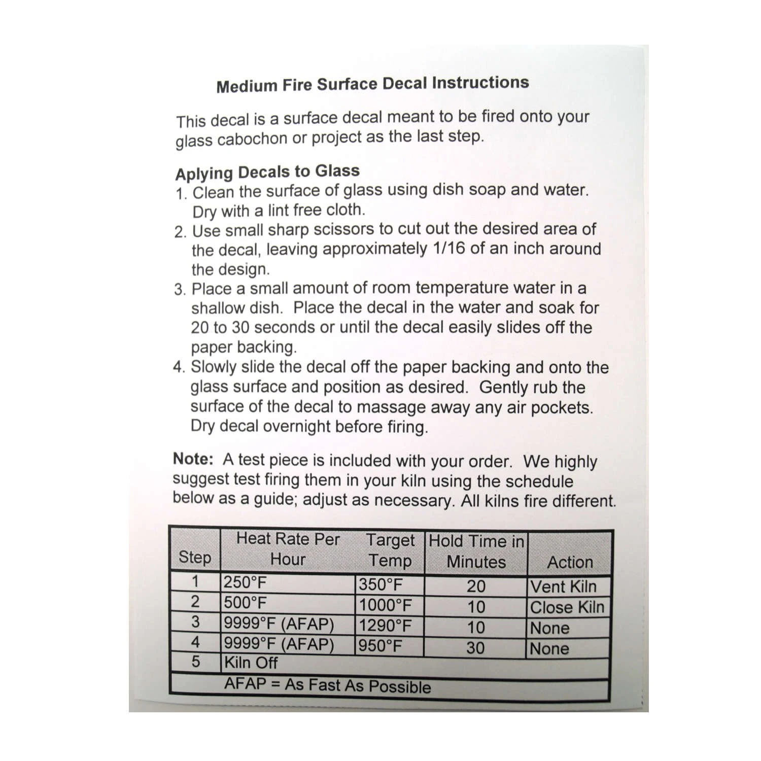 Rich gold decals in intricate designs are the perfect embellishment for your project. The 5″ x 3-1/2″ sheet contains detailed silhouettes that are perfect for jewelry and other fused art with personality. Approximately 25 designs per sheet. Designs measure approximately 1/2″. The easy, low fire formulation matures to a lustrous gold finish. Must be fired on top of glass. Detailed instructions are included. Decals mature at 1290° F.
