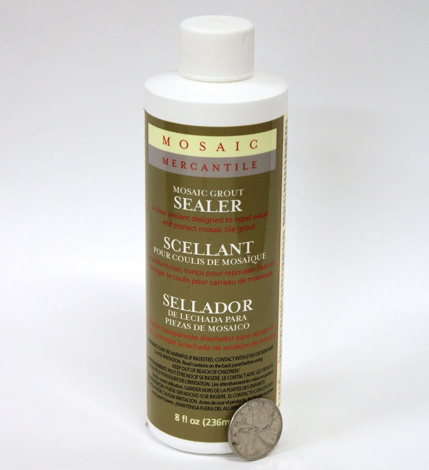 Apply clear sealant over mosaic tile and grout to repel water and protect the surface. It keeps tile grout clean from water, dirt, food, and discoloration. Keep your mosaics pristine with this easy to apply sealant. 8 oz.