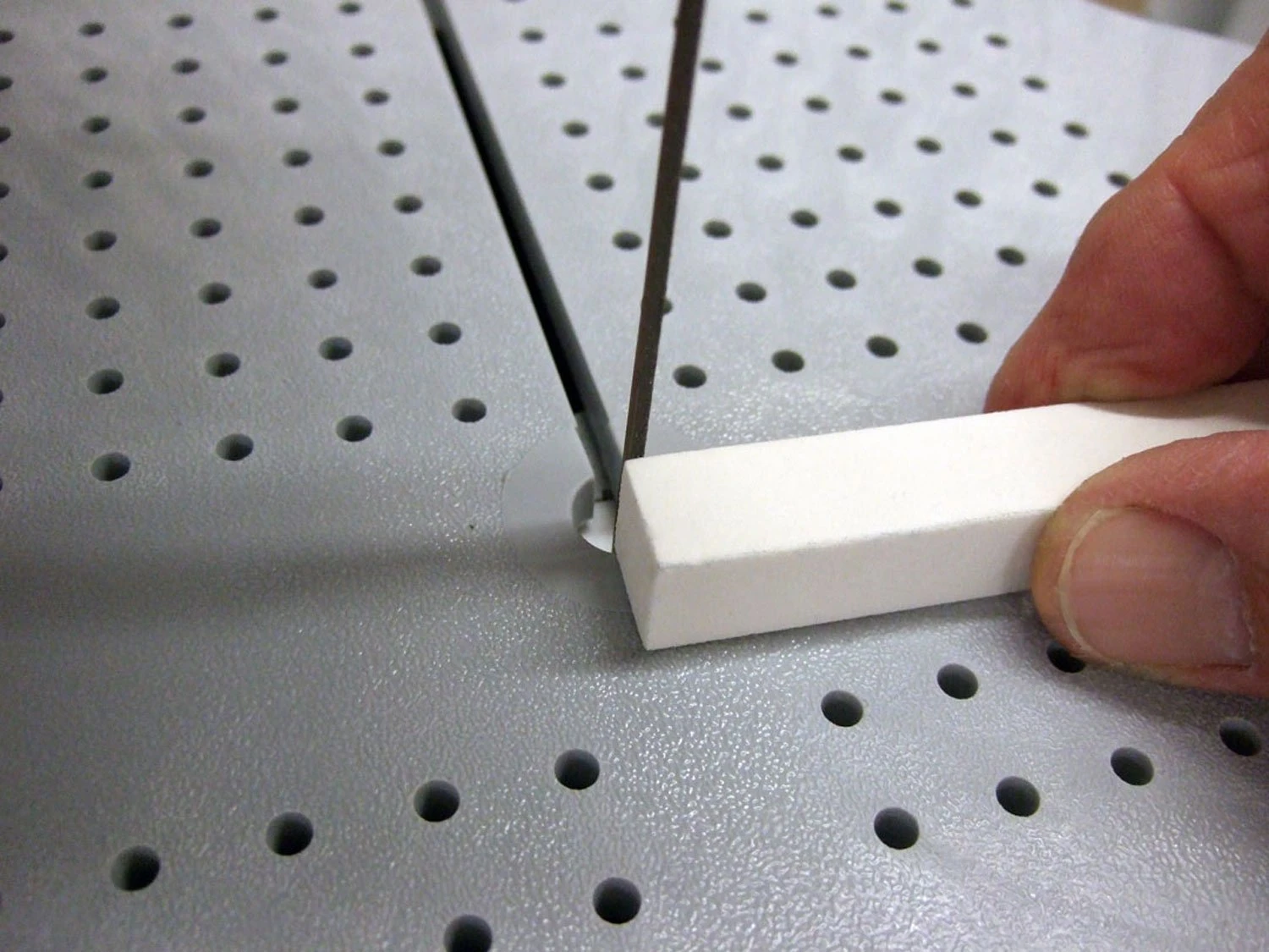 Extend the life of your diamond coated saw blades and grinding bits with this dressing stone. Simply cut one to two slices off the stone with your diamond saw blade, or grind away a small part of the stone with your diamond grinder bit to rejuvenate the diamond coating and remove contamination and built up residue. Measures 6″ long and will last through many uses.