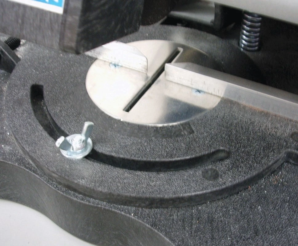 - Perfect repeat cuts are a snap with the protractor scale