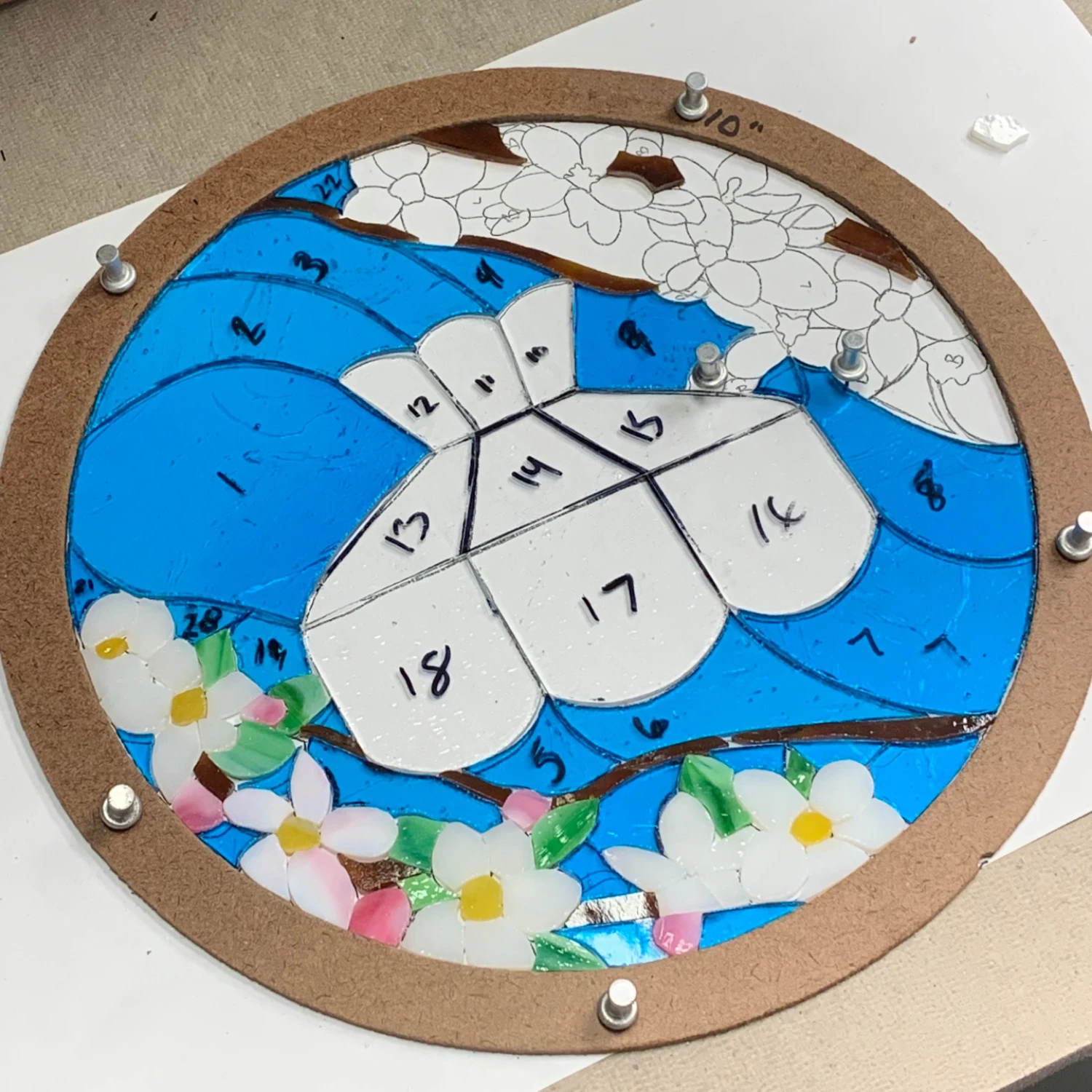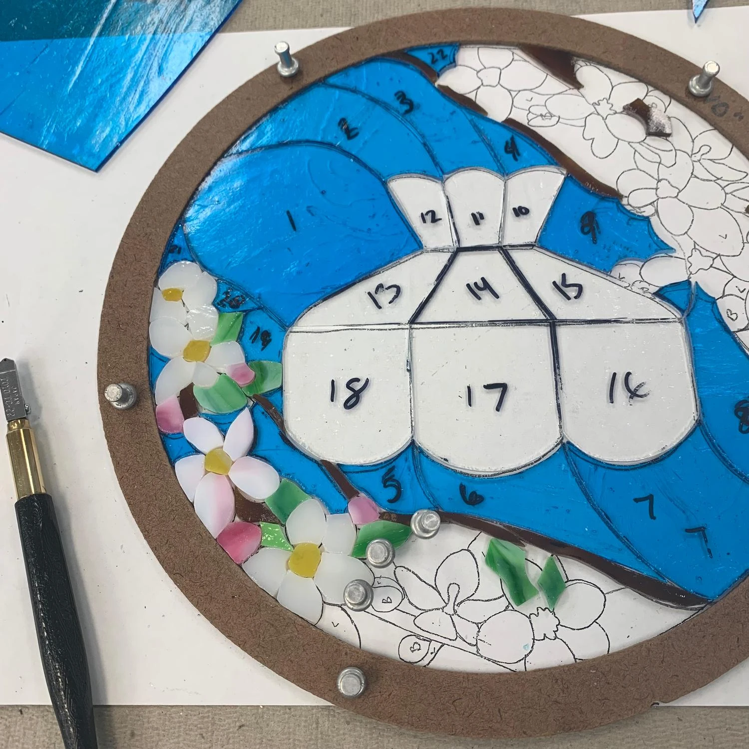 As stained glass artists, we know it can be frustrating when your project grows or changes shape during the assembly process and now with the Handy Rings Combo Pack, there is finally a simple way to prevent this from happening! Hold your circle projects secure while you solder them or use them to carefully retain the size of your project while cutting and sizing your pieces. Layout Frames are constructed from lightweight, water-resistant material designed to withstand heavy use. Pack includes seven frames, measuring 6″, 8″, 10″, 12″, 14″, 16″ and 18″.