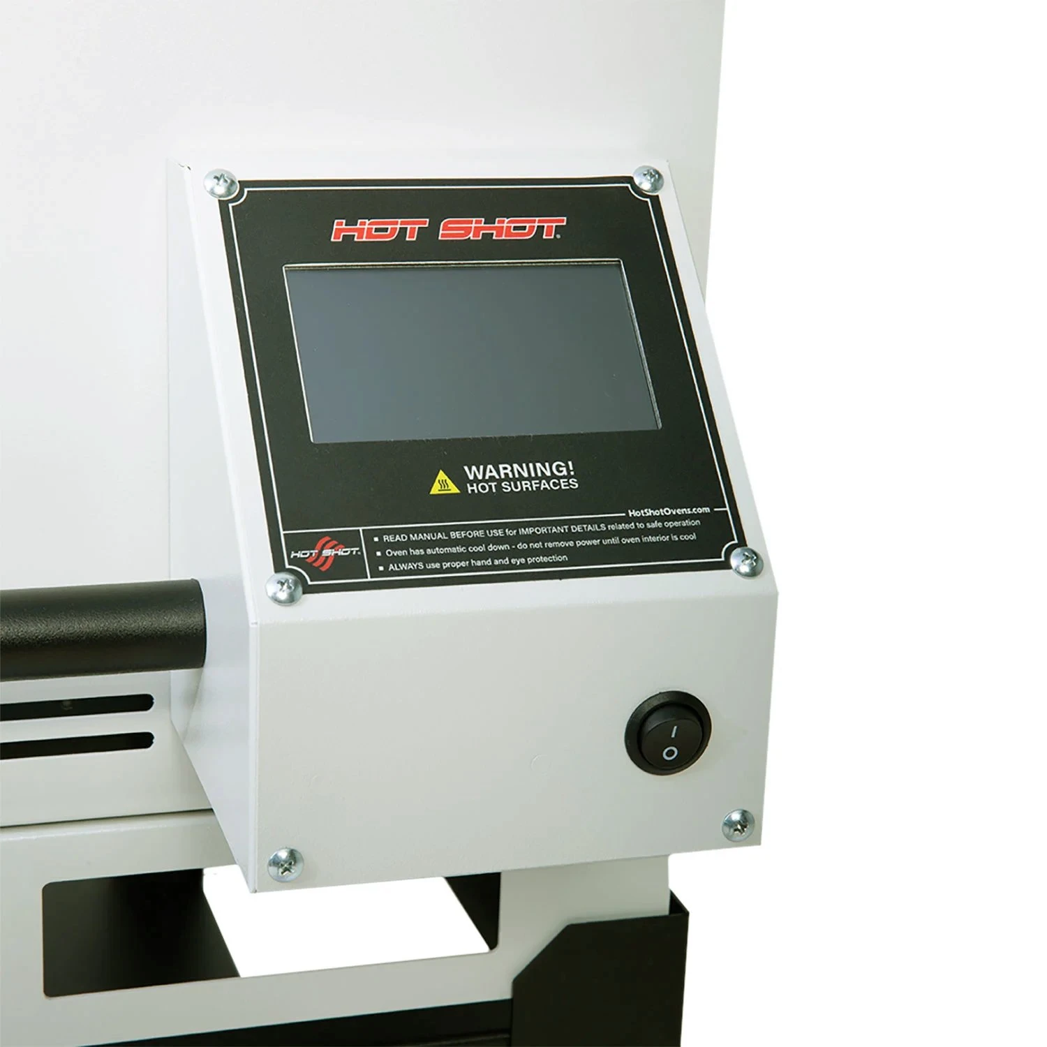 What does cool touch technology mean? It means the body of the kiln never reaches above 15 degrees ambient temperature allowing you more workspace around your kiln. This kiln only requires 3″ surrounding it. It is built with a high-quality powder coating core construction with a fan cooled external powder coated enclosure. It features a dual layer air plenum for external heat management and precise temperature control.