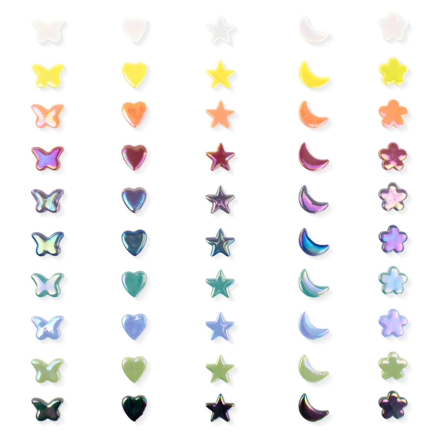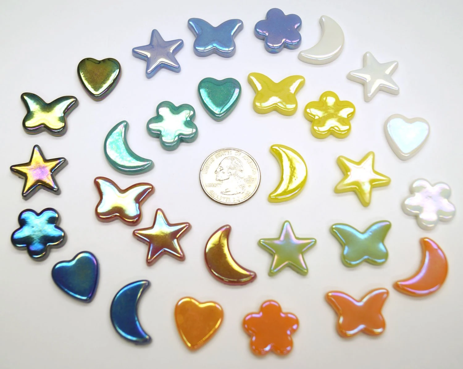 Garden dream tiles feature a glossy iridized surface tiles with rounded edges making them perfect for students or camps. Tile color runs through the entire depth of the tile so it resists fading. Durable tiles rarely crack but can easily be nipped to the size you need. Tiles measure approximately 3/4″; sold in a 1 lb. package.
