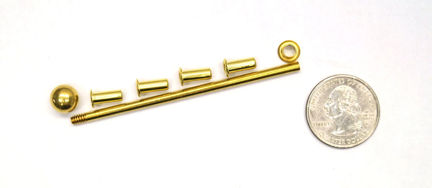 Use to mount stained glass wheels onto your kaleidoscope, Image Wheel, and Image Rings. Includes a 1/8″ x 3″ solid brass axle, brass bell nut, and four wheel-mounting eyelets.