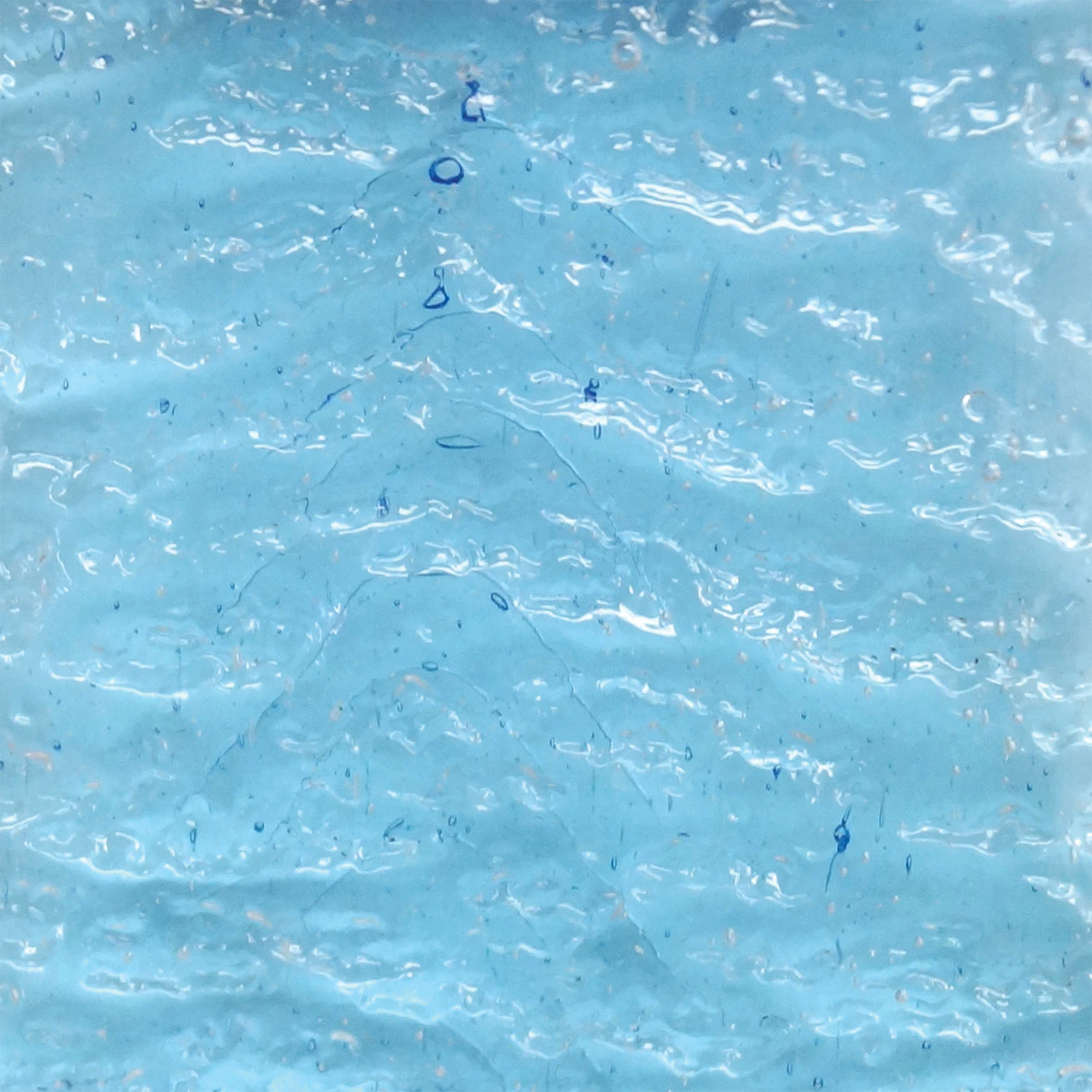 Main glass swatch is a 2″ square to better show detail. Second image shows glass black lit.Â