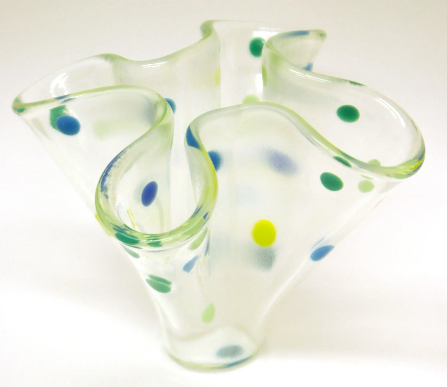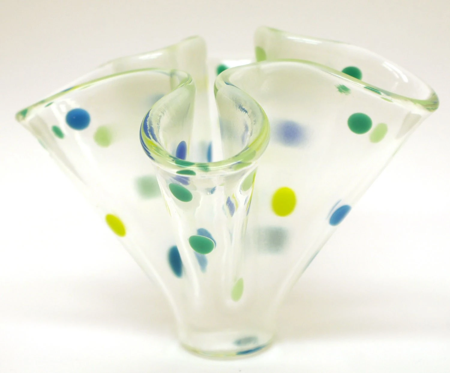 Project shown in additional images was created by artist Kayleigh Clark using Lagoon Fusible Dots and pre-cut circles fused and draped over a Stainless Steel Bud Vase Draper (item #81714).