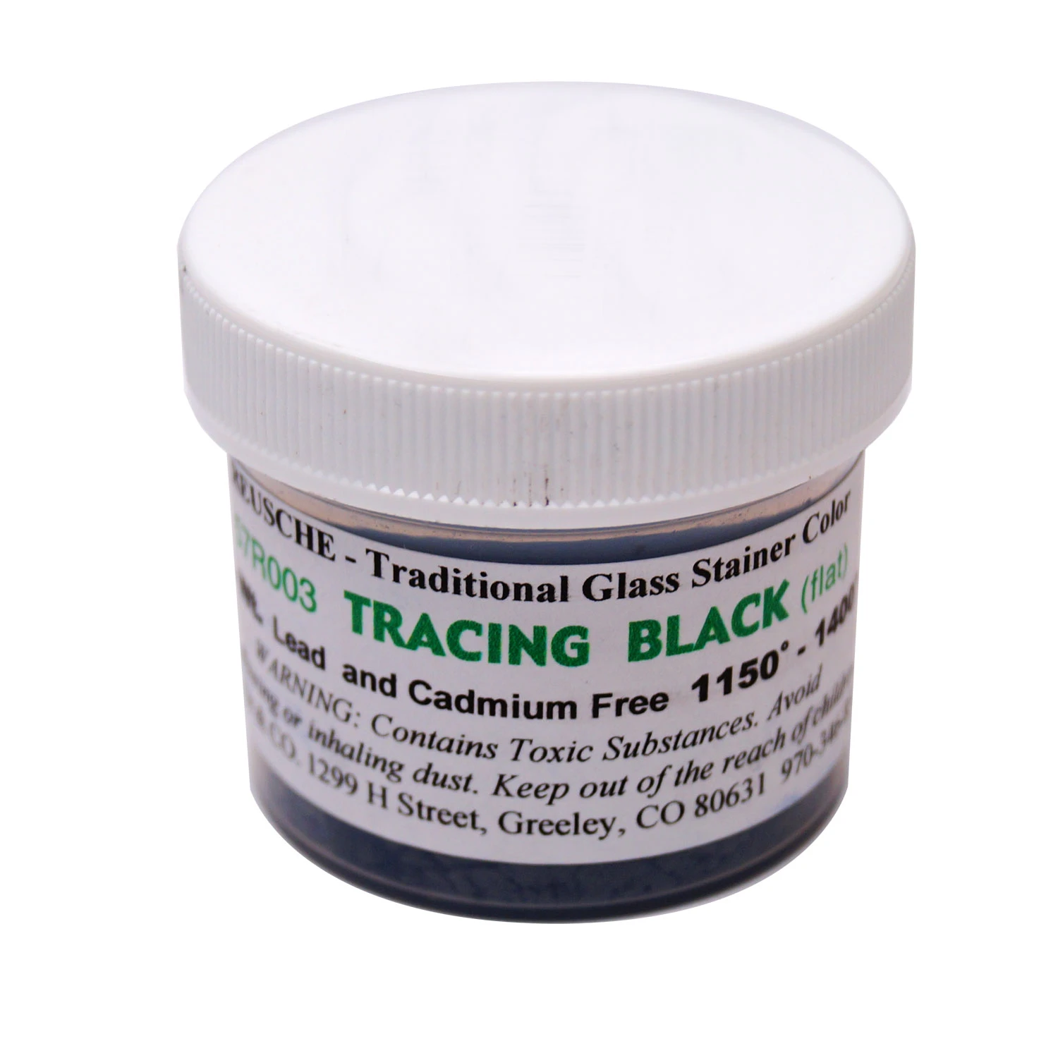 Reusche paints are in powdered form; mix with water and gum arabic before application. Paints need to be fired to become permanent. Also called “glass stainers colors.” Leadfree — so it’s safe for food bearing surfaces. One ounce jars.