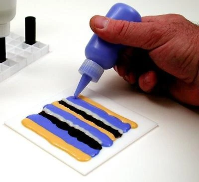 Delphi Tip: Do even more with Liquid Stringer! Use it with colored enamels by adding enamel to compatible clear powder frit.