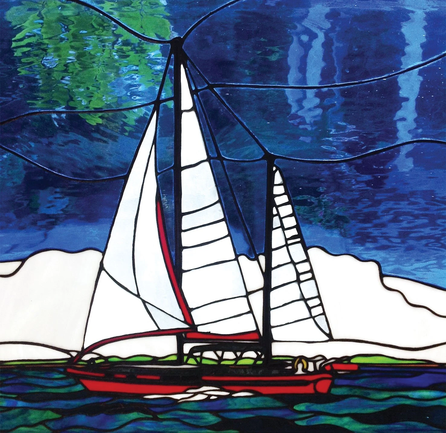 Square kaleidoscope panel by artist Molly Pratt, from Delphi’s Online Artist Gallery. Sailboat project by artist Kimberly Clements, From Delphi’s Online Artist Gallery. Pattern from “Nature’s Splendor” book #6797.