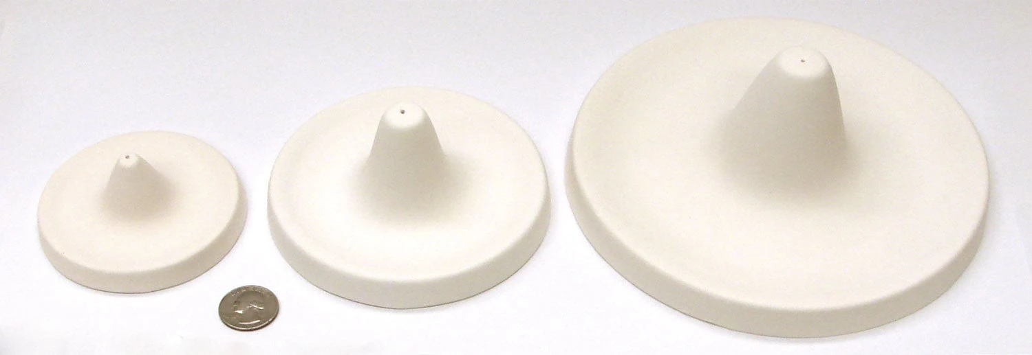 Create beautiful bouquets and show stopping garden accents! Medium Cone Flower Mold is ideal for making flowers with deep drops in the center and organic ruffled petals. Ceramic molds can be fired many times. Must be kiln washed before use. See size perspective of mold with quarter and book images shown. Group of three small, medium and large cones pictured side by side for easy comparison. Measures 6″ diameter by 2-1/5″ high.