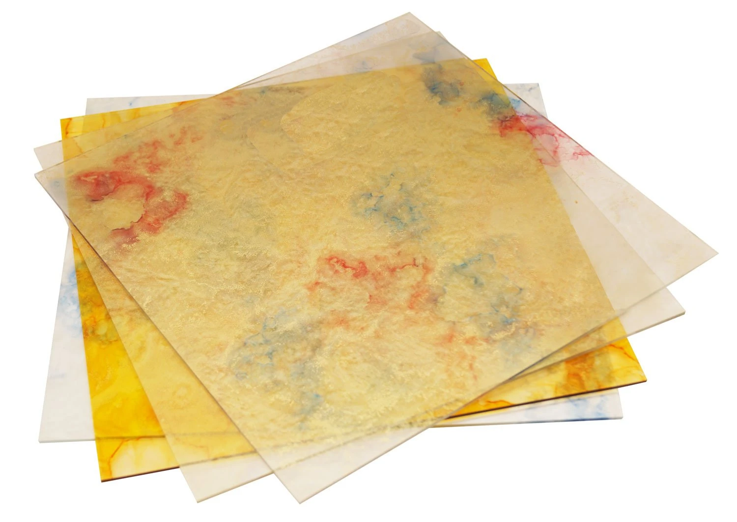 Color designs are applied to glass surface and withstand normal handling, cutting and nipping. Due to the nature of this glass you must cut on the matte/coated side. If scored on the opposite side, the glass will not break. For best results, do not submerge or use harsh chemicals on glass surface. To remove pattern marking use rubbing alcohol to remove. This will not harm the coating. Exact color, pattern and designs vary in this exciting glass. Piece sizes are approximate.