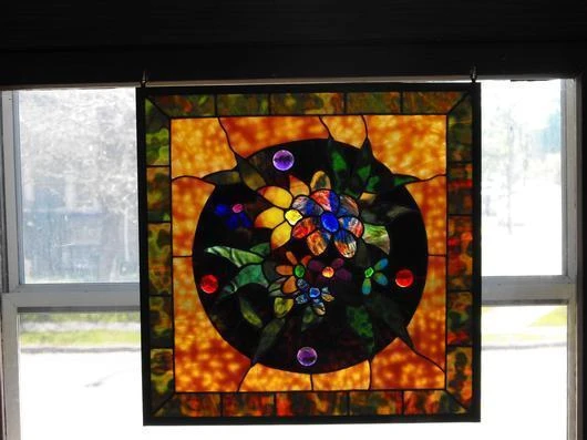 Panel by artist Chester Reinhardt. Dragonfly suncatcher by artist Charles Herron. Lamp by artist Scott Riggs. From Delphi’s Online Artist Gallery.Â